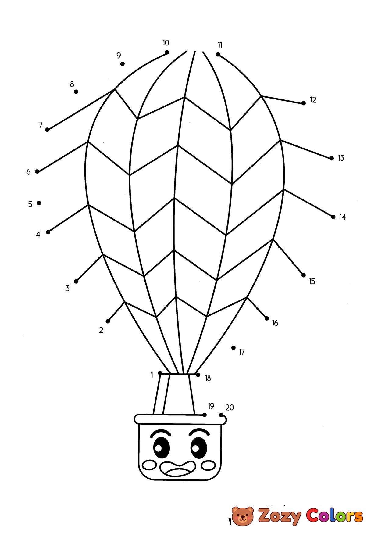Hot air baloons dot the dots - Free Dot the dots worksheets. Free and easy print for your kids.
