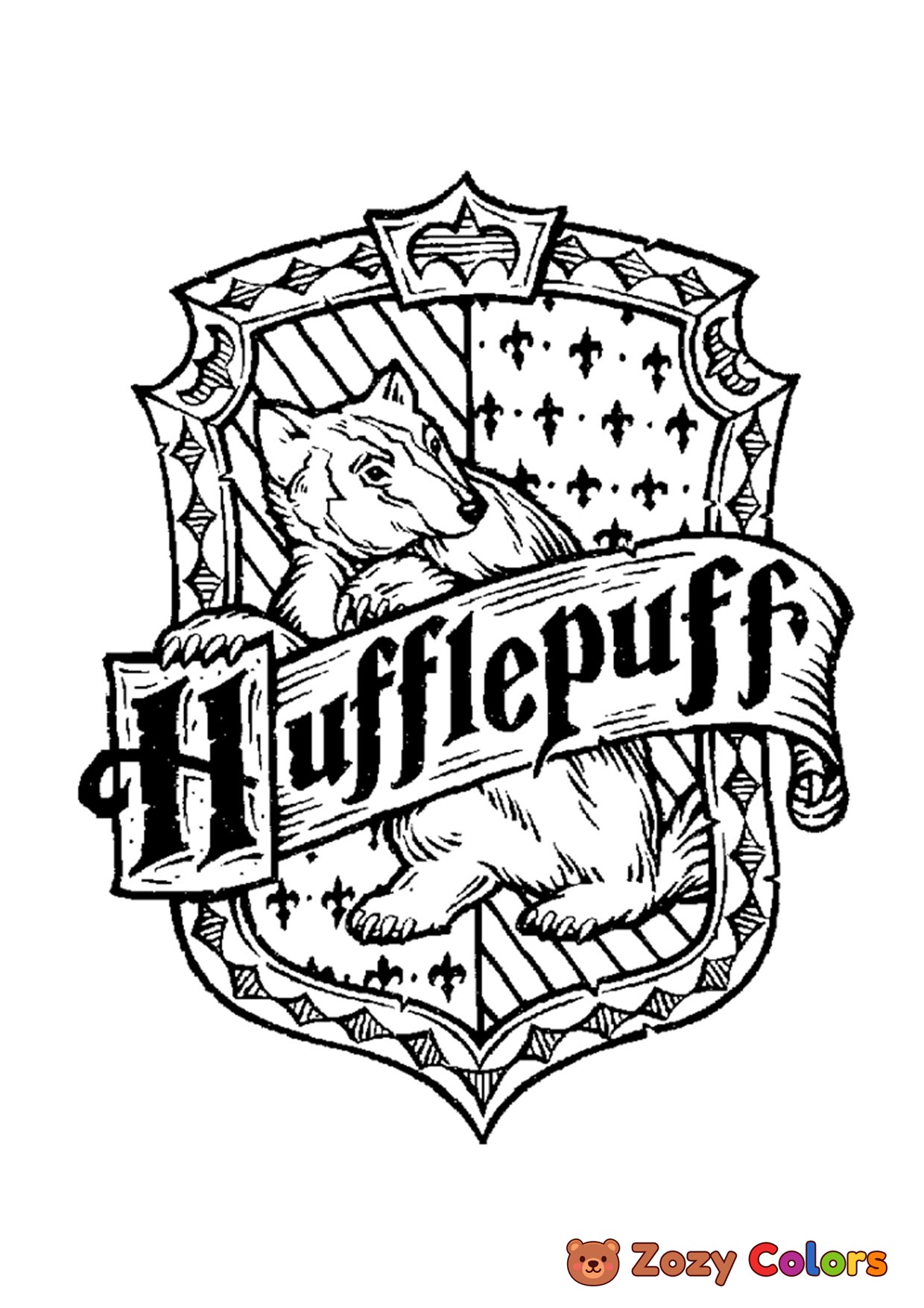 Hufflepuff crest. Coloring page to print or download and color for your kids.