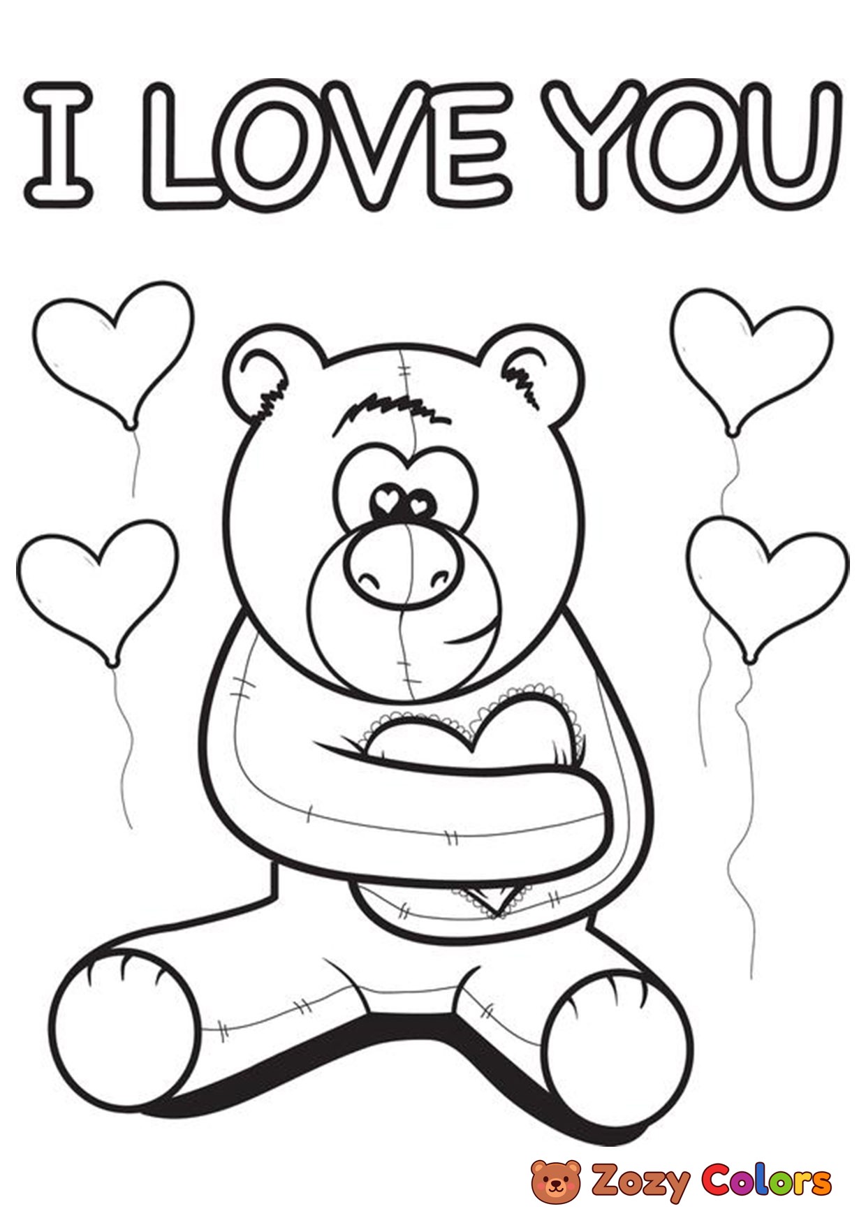 I love you Teddy Bear. Coloring page to print or download and color for your kids.