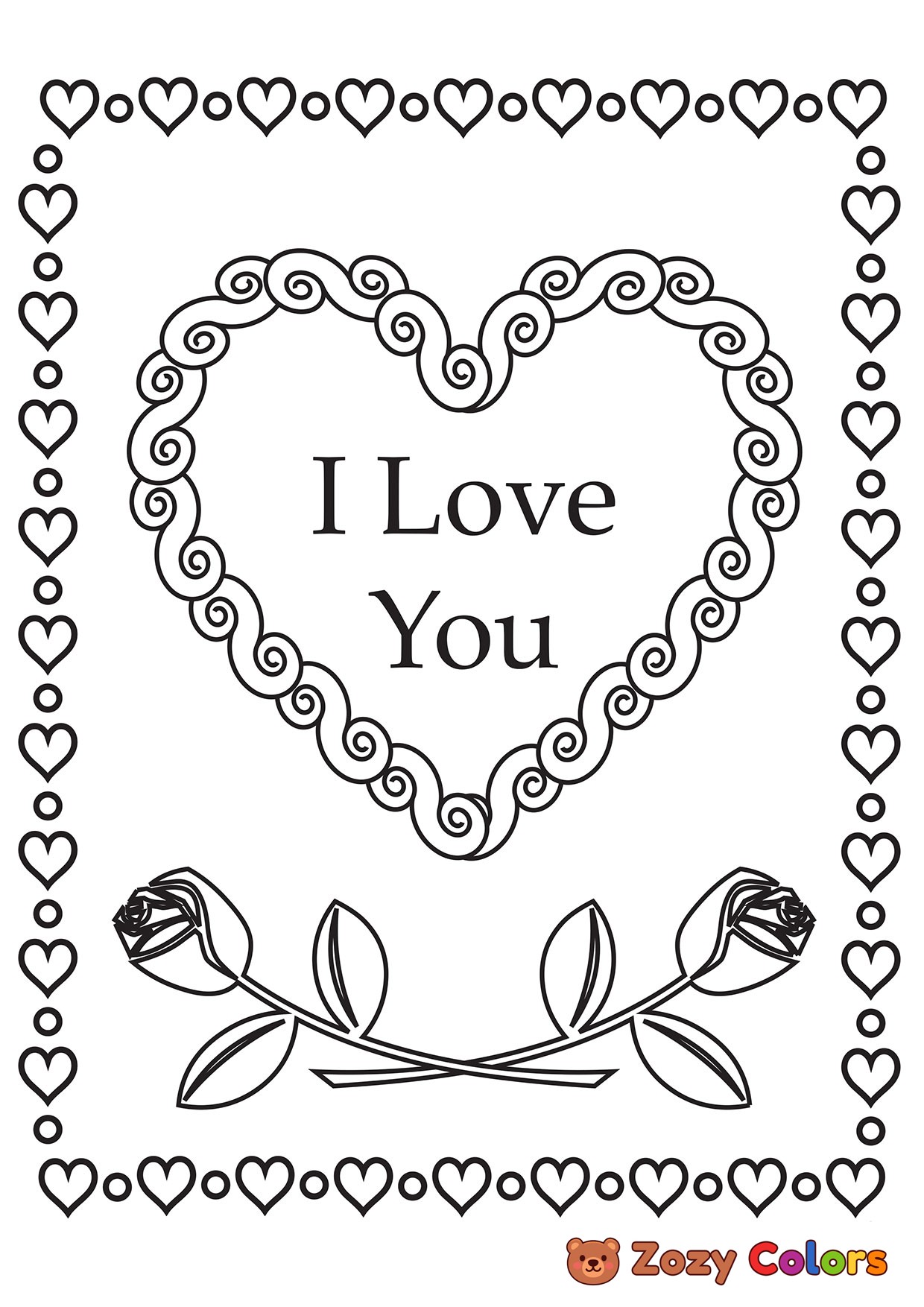 I Love You Valentines card. Coloring page to print or download and color for your kids.