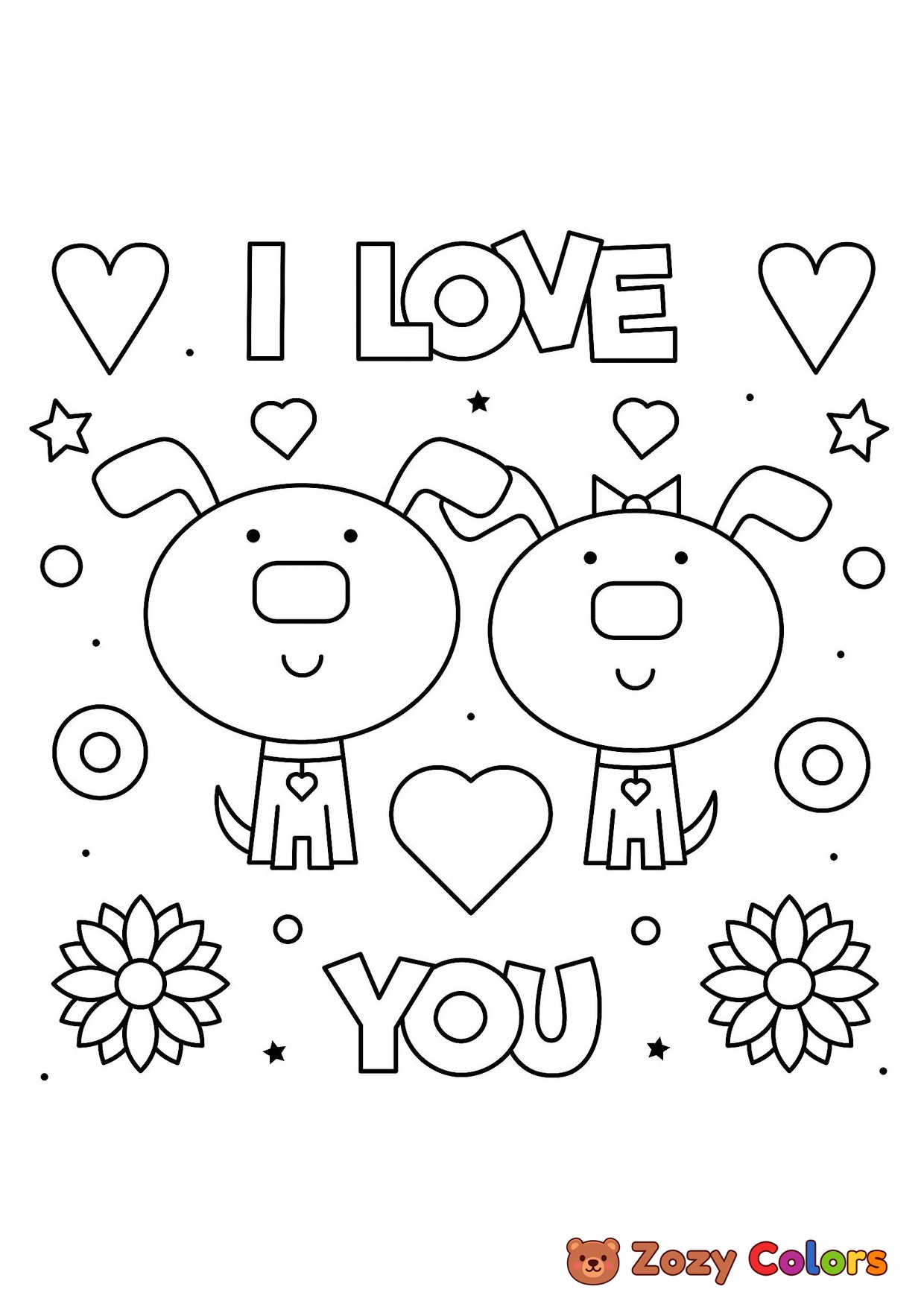 I love you Valentines doodle. Coloring page to print or download and color for your kids.