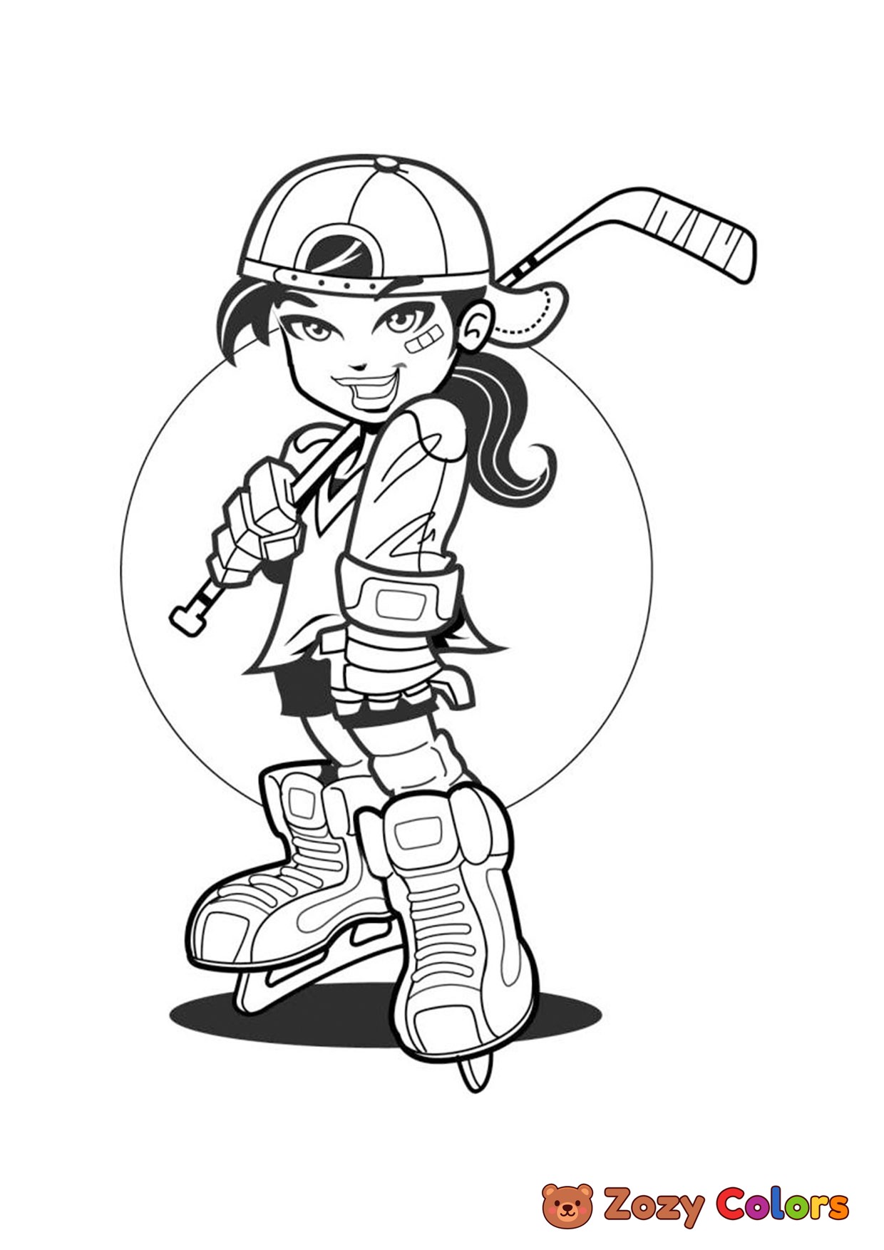 Ice hockey girl. Coloring page to print or download and color for your kids.