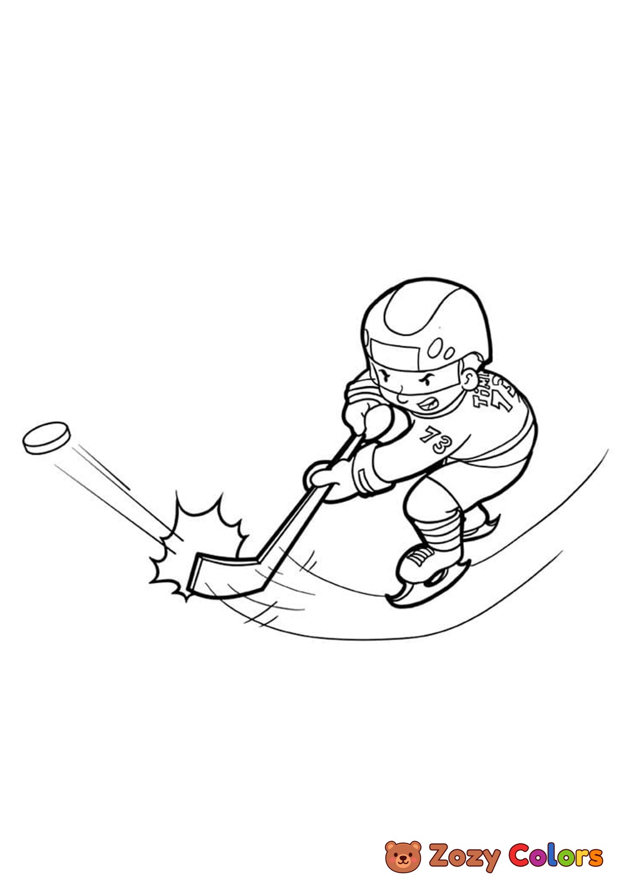 Ice hockey shooting. Coloring page to print or download and color for your kids.