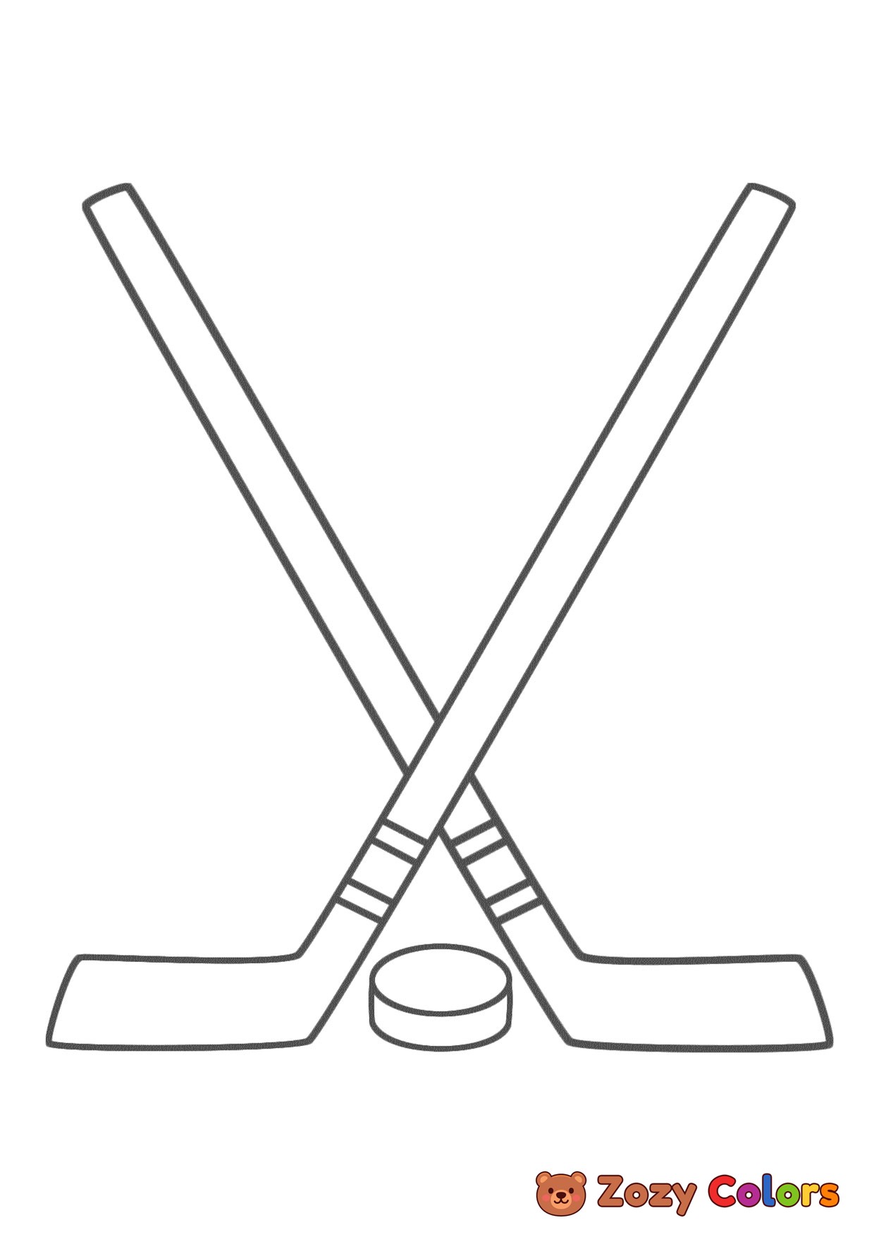 Ice hockey sticks and puck. Coloring page to print or download and color for your kids.