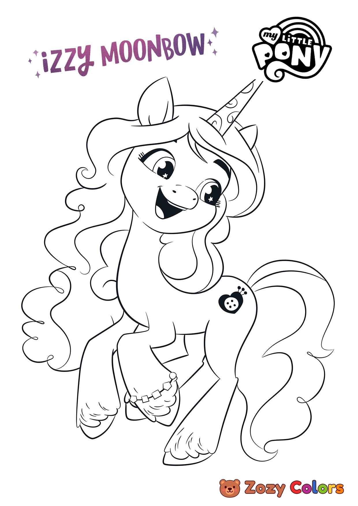 Izzy Moonbow posing. Coloring page to print or download and color for your kids.