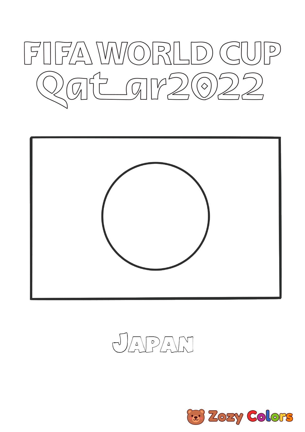 Japan World Cup flag. Coloring page to print or download and color for your kids.