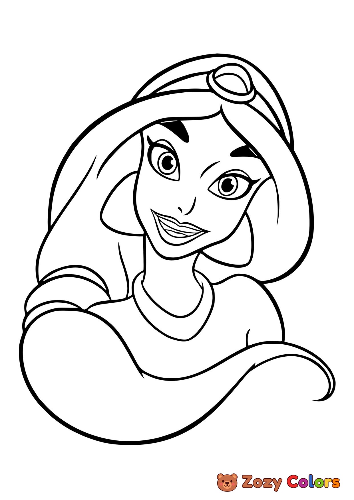 Jasmine portrait Disney princess. Coloring page to print or download and color for your kids.