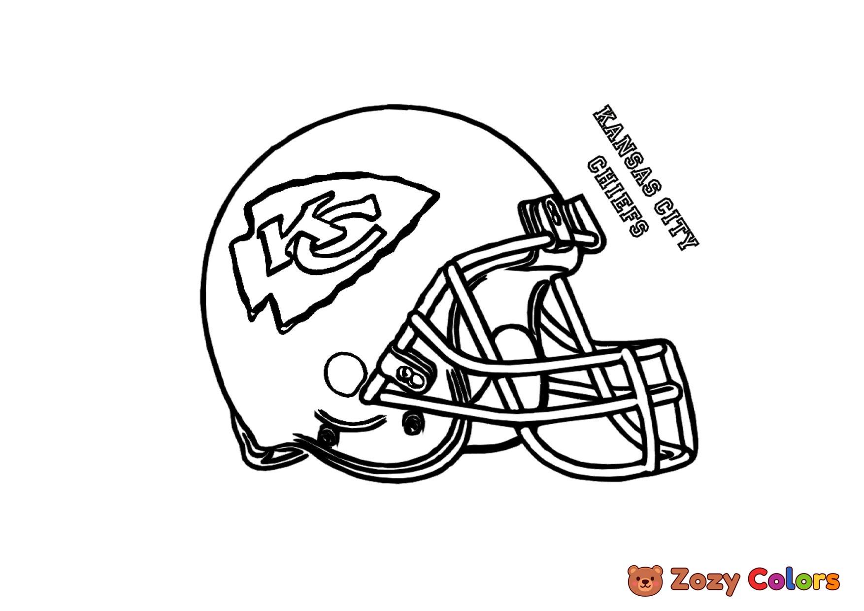 Kansas City Chiefs NFL helmet. Coloring page to print or download and color for your kids.