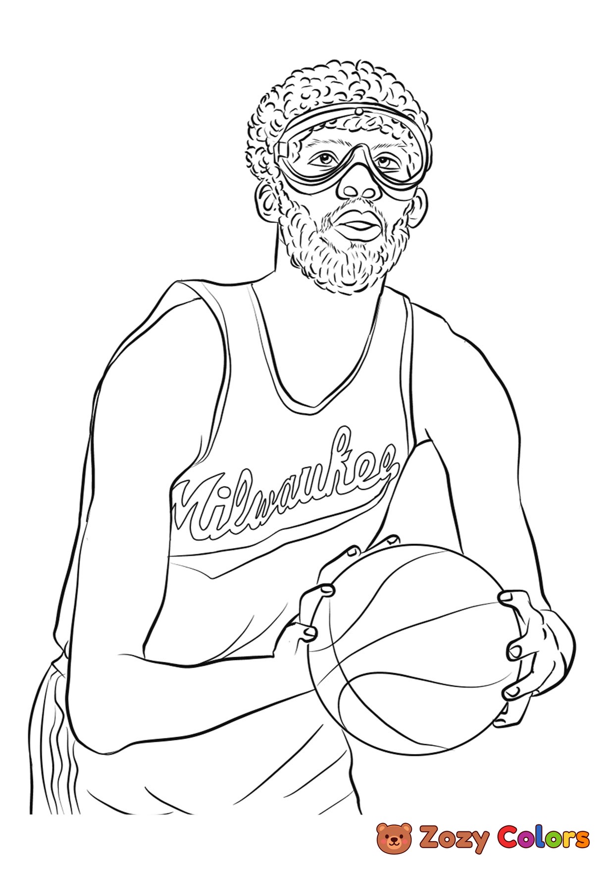 kareem abdul jabbar. Coloring page to print or download and color for your kids.