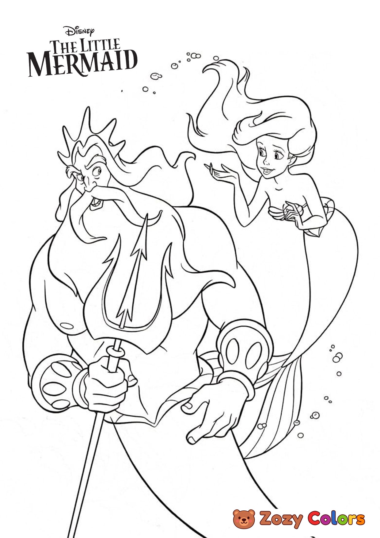 King Trinton with Ariel. Coloring page to print or download and color for your kids.