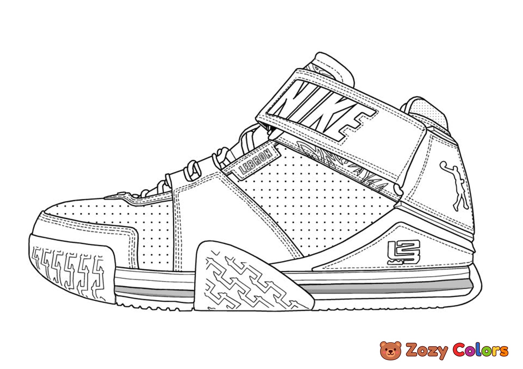 Lebron shoes. Coloring page to print or download and color for your kids.