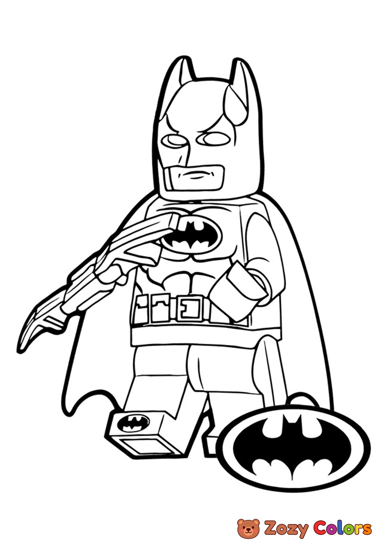 Lego Batman with cape. Coloring page to print or download and color for your kids.
