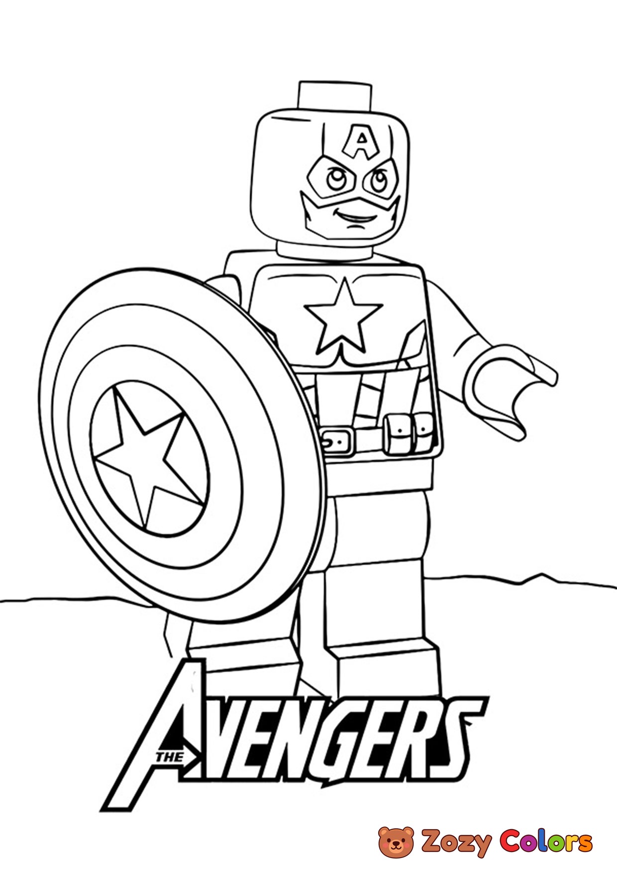 Lego Captain America. Coloring page to print or download and color for your kids.