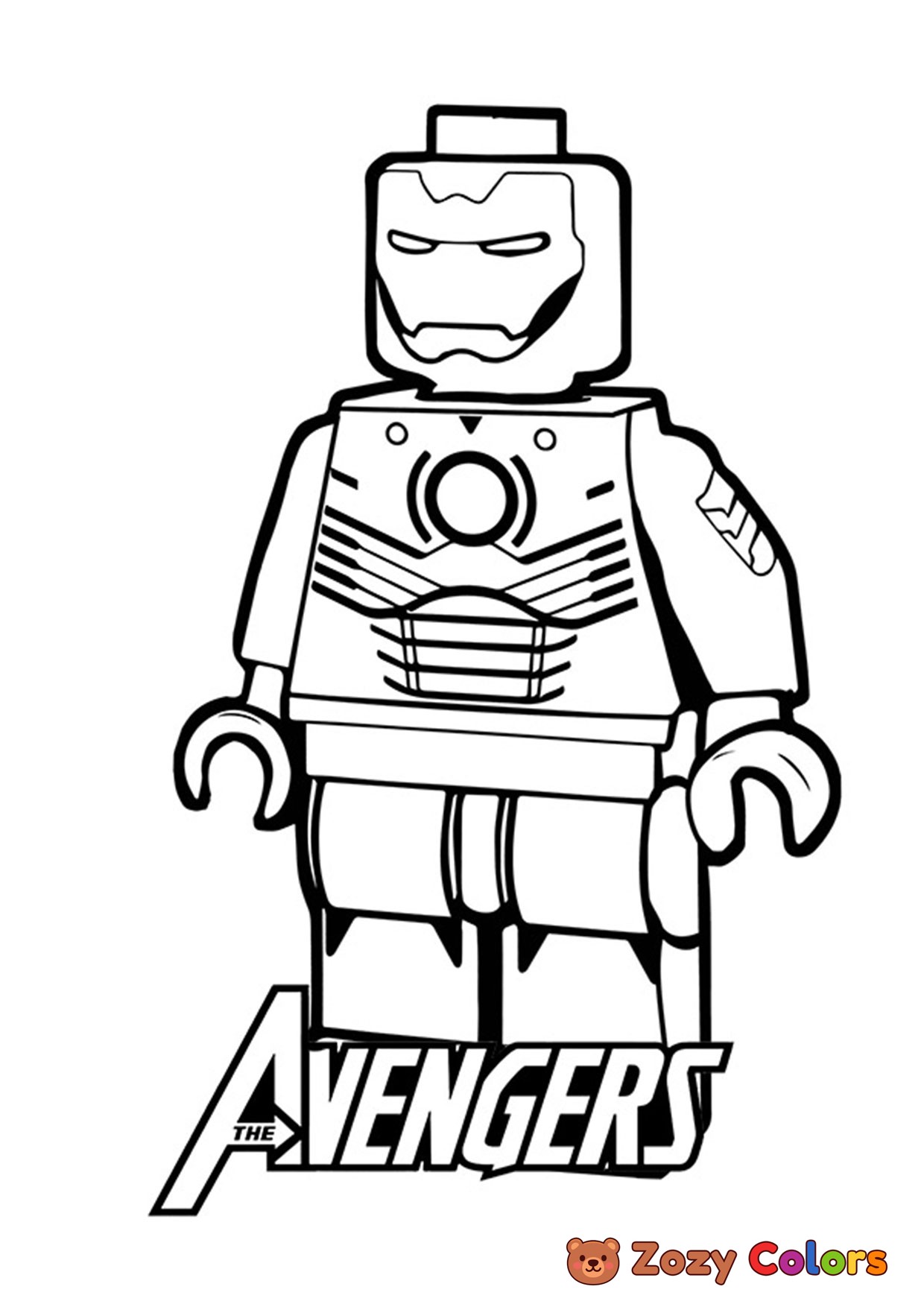 Lego Iron Man. Coloring page to print or download and color for your kids.