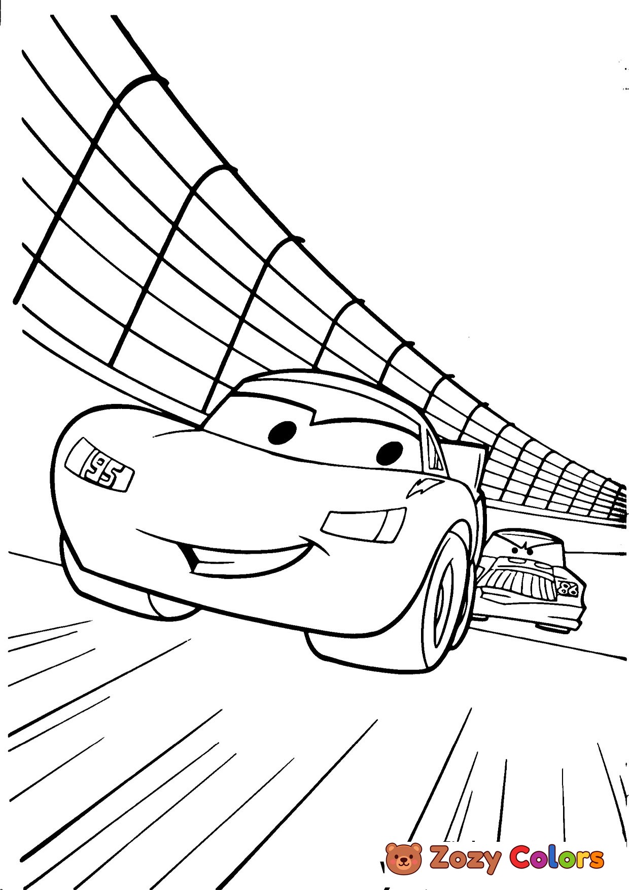 Lightning McQueen's racing his rivals. Coloring page to print or download and color for your kids.