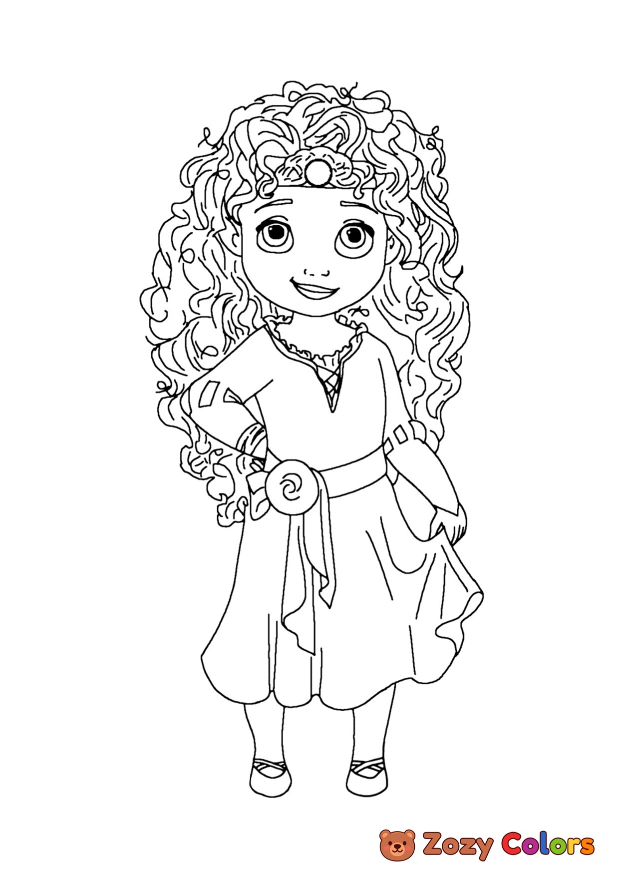 Little Merida Disney princess. Coloring page to print or download and color for your kids.