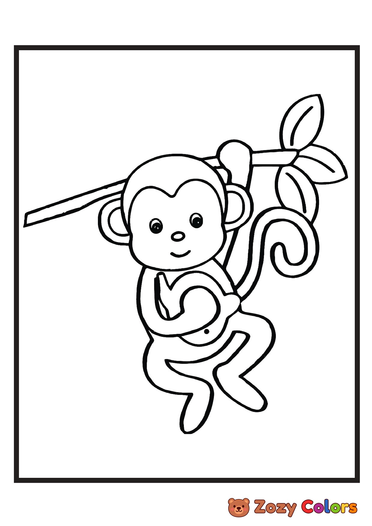 Little monkey in zoo. Coloring page to print or download and color for your kids.