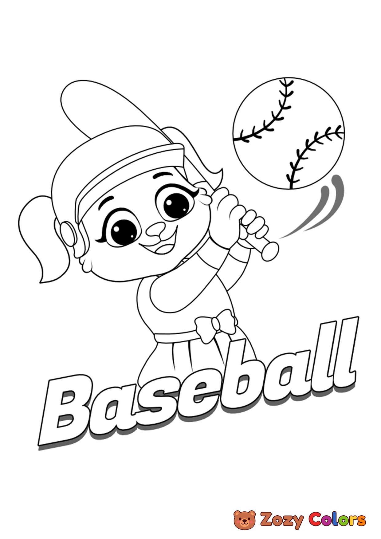 Little puppy playing baseball. Coloring page to print or download and color for your kids.