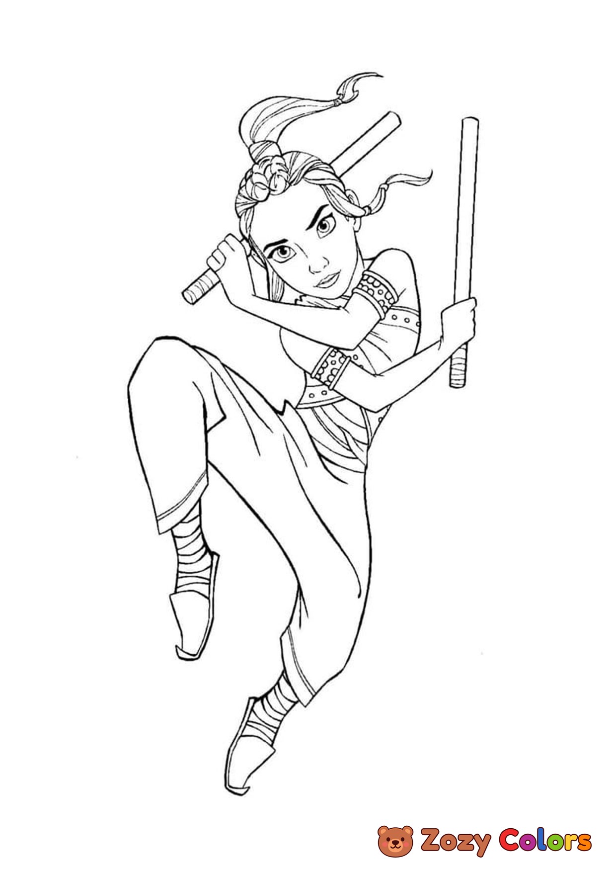 Little Raya Disney princess. Coloring page to print or download and color for your kids.