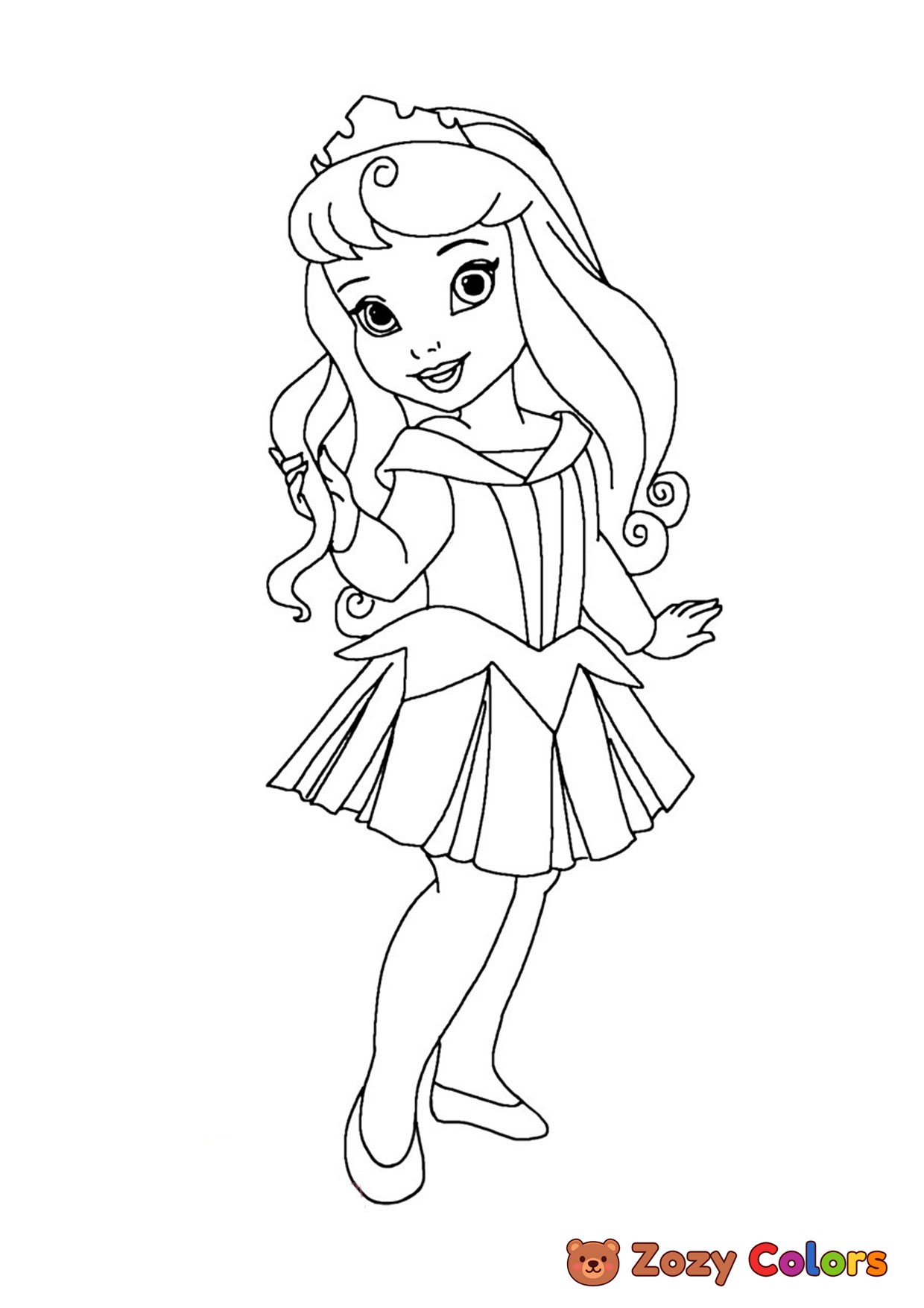 Little Sleeping Beauty Aurora Disney princess. Coloring page to print or download and color for your kids.