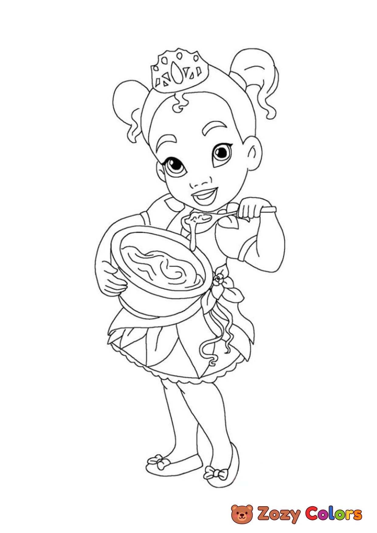 Little Tiana Disney princess. Coloring page to print or download and color for your kids.