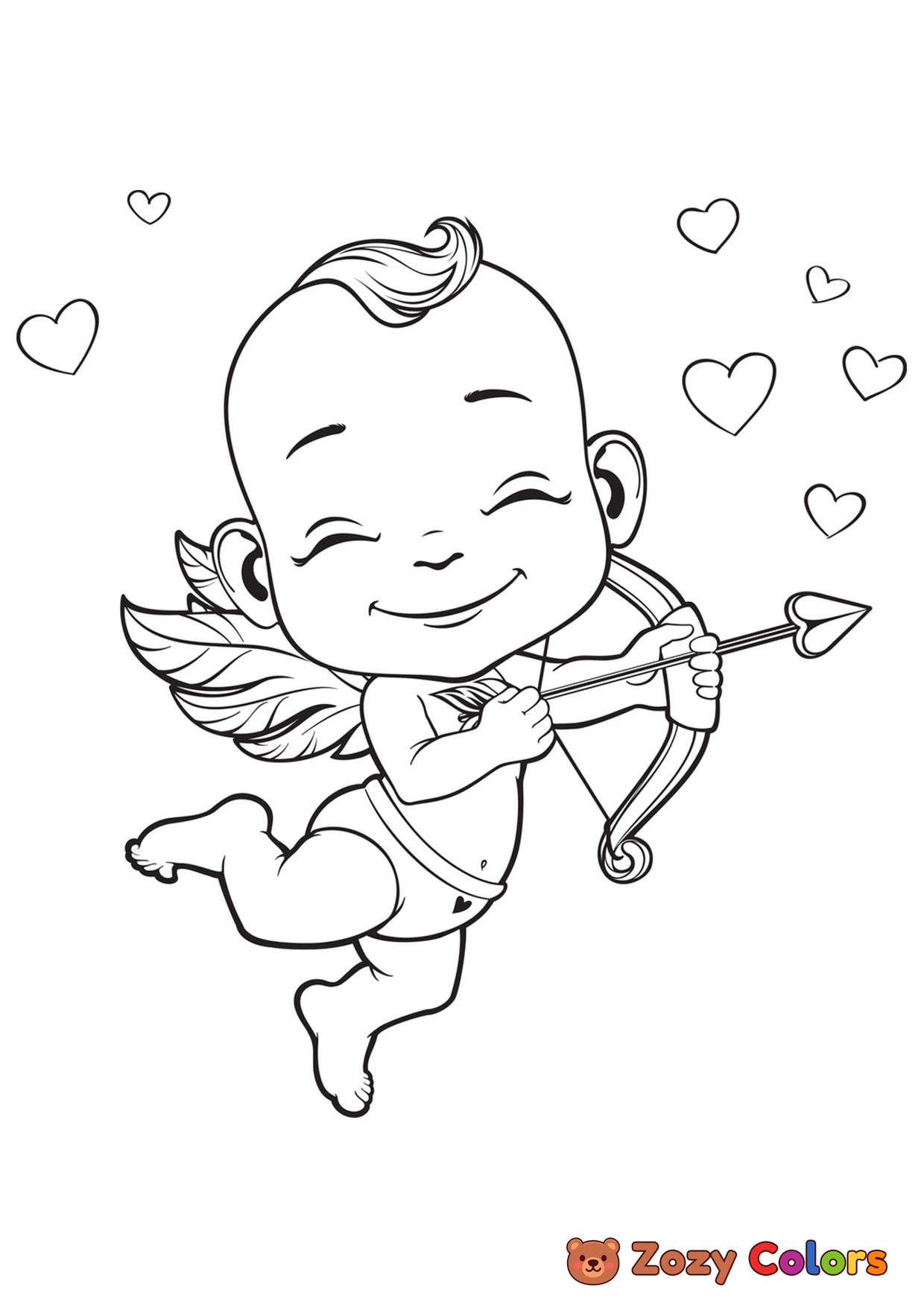 Little Valentines Cupid. Coloring page to print or download and color for your kids.