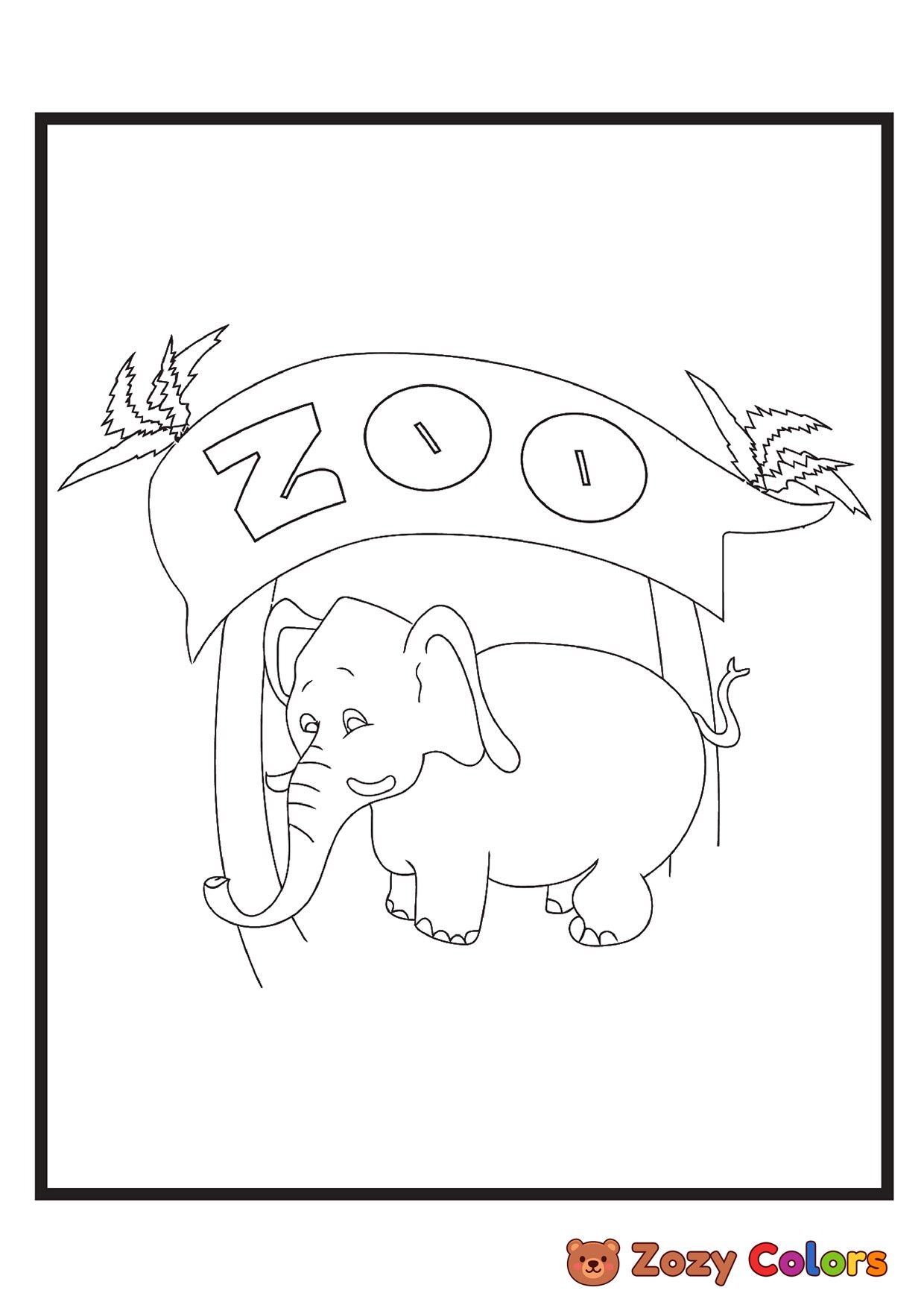 Little zoo elephant. Coloring page to print or download and color for your kids.