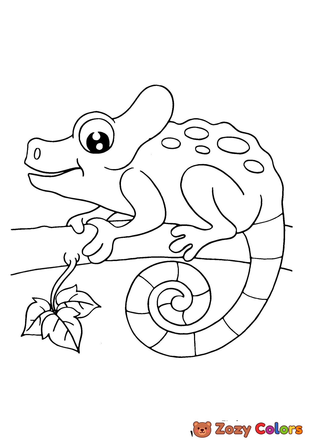 Lizard on a branch. Coloring page to print or download and color for your kids.