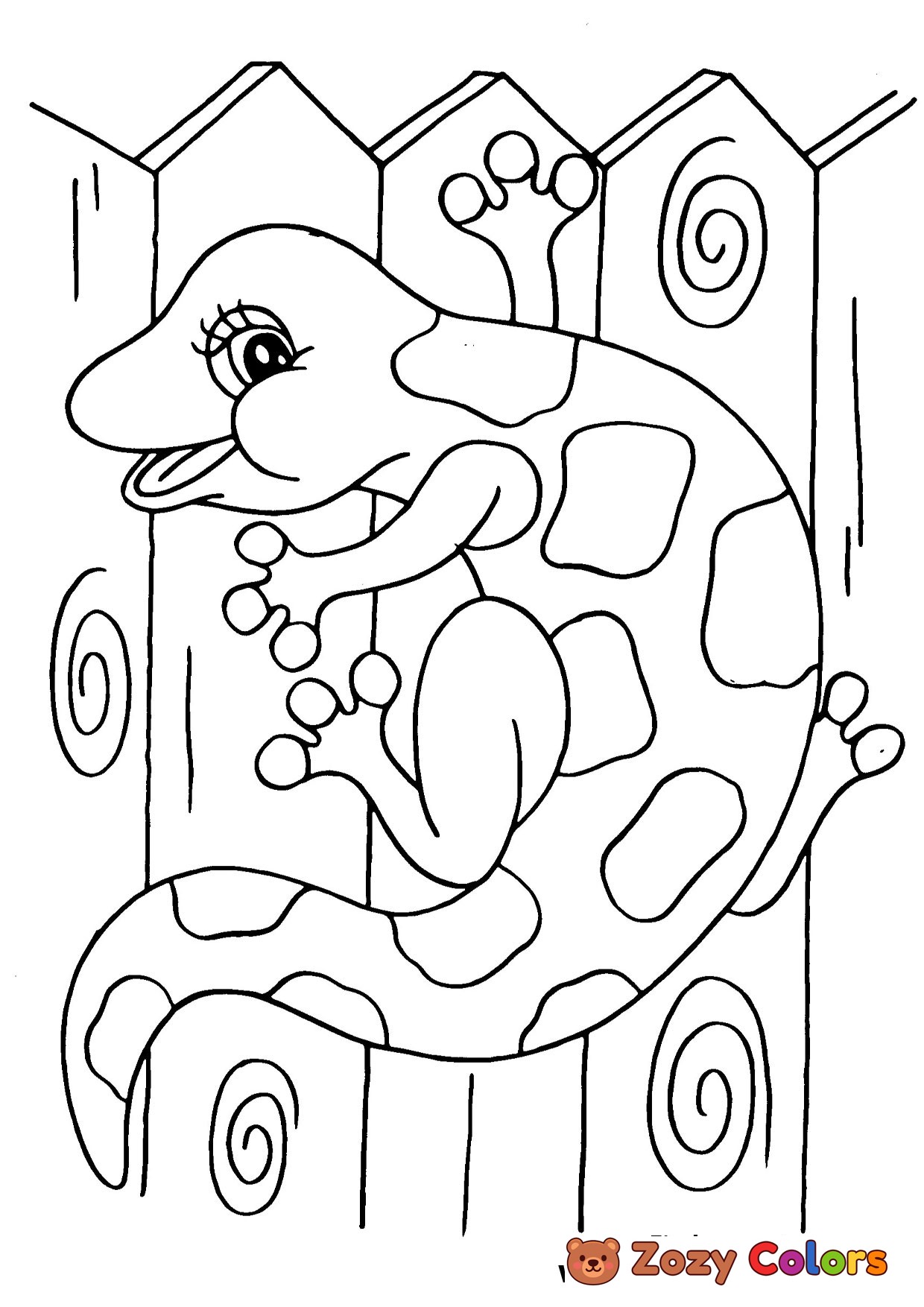 Lizard on a fence. Coloring page to print or download and color for your kids.
