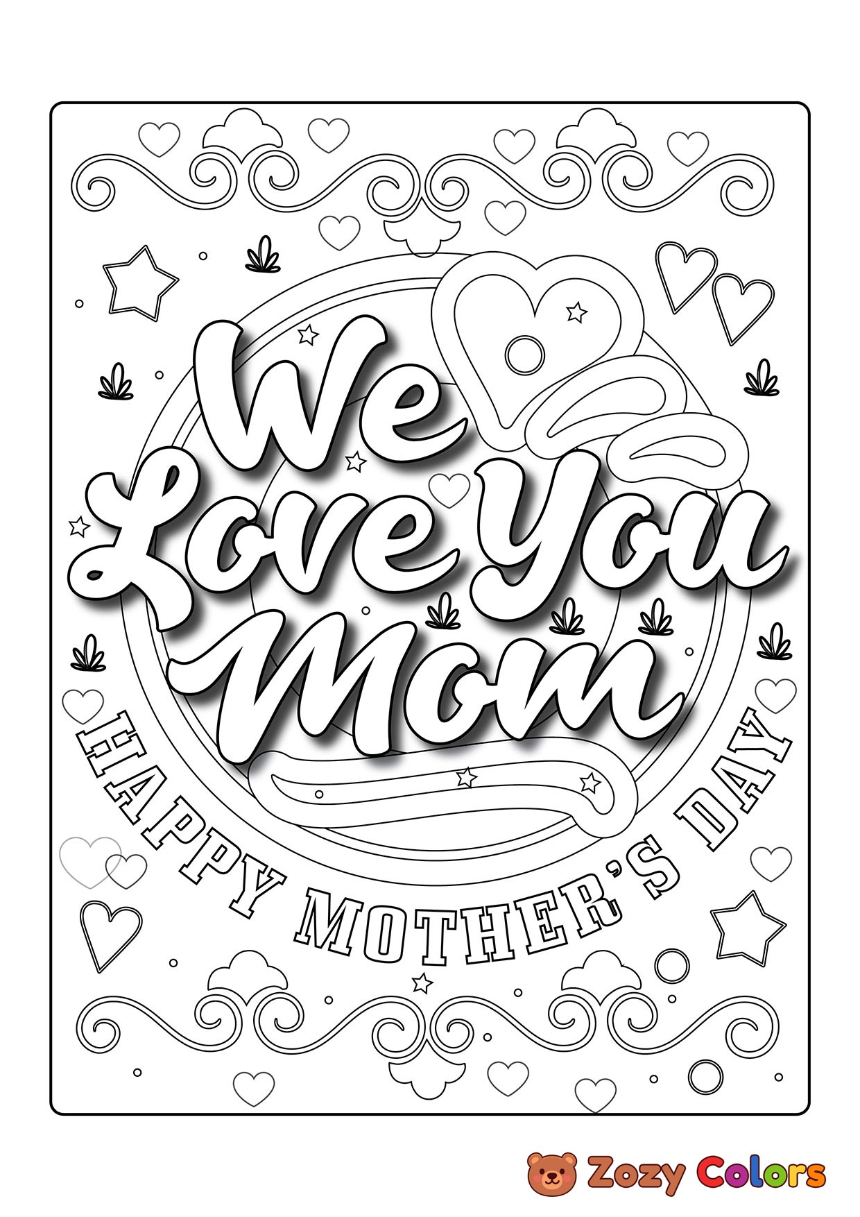 Love you Mom. Coloring page to print or download and color for your kids.