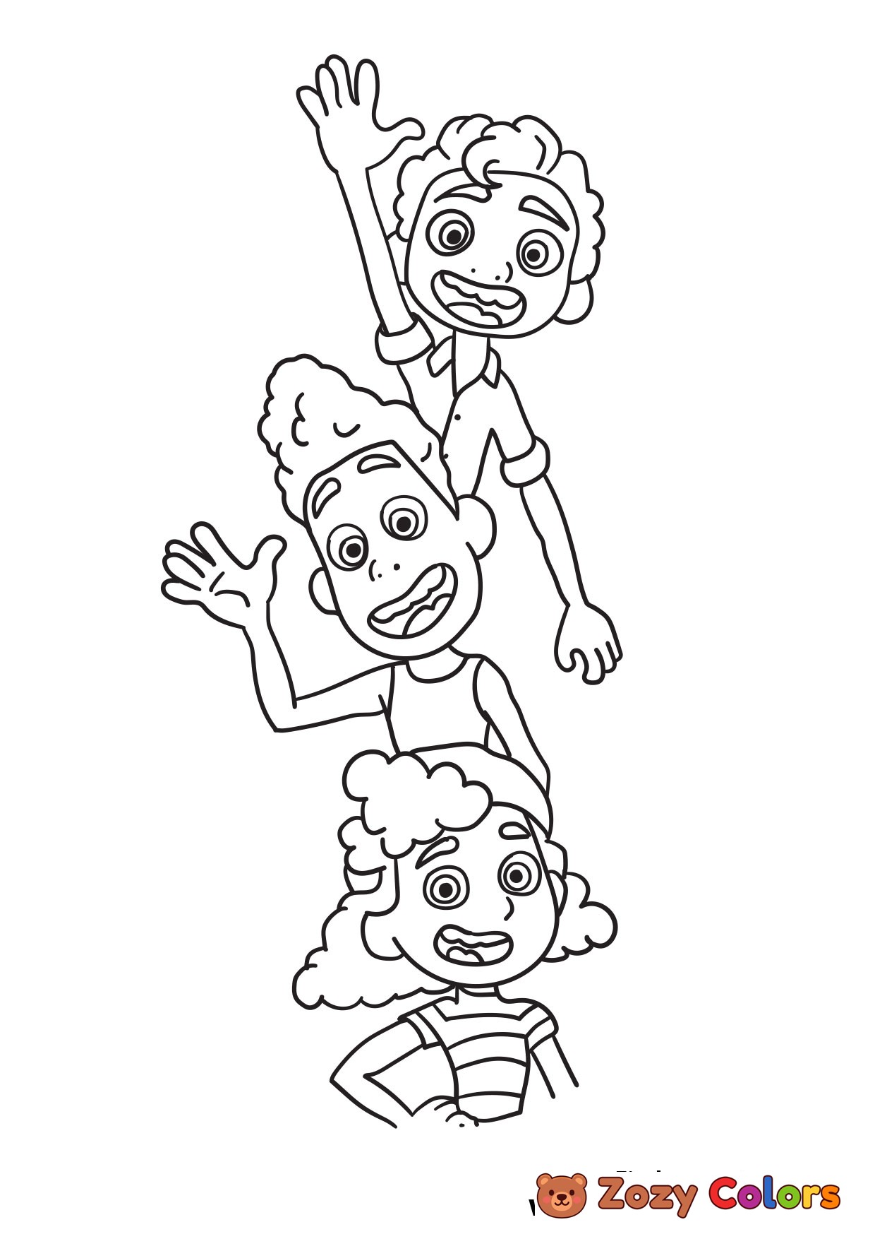 Luca, Alberto and Giulia. Coloring page to print or download and color for your kids.