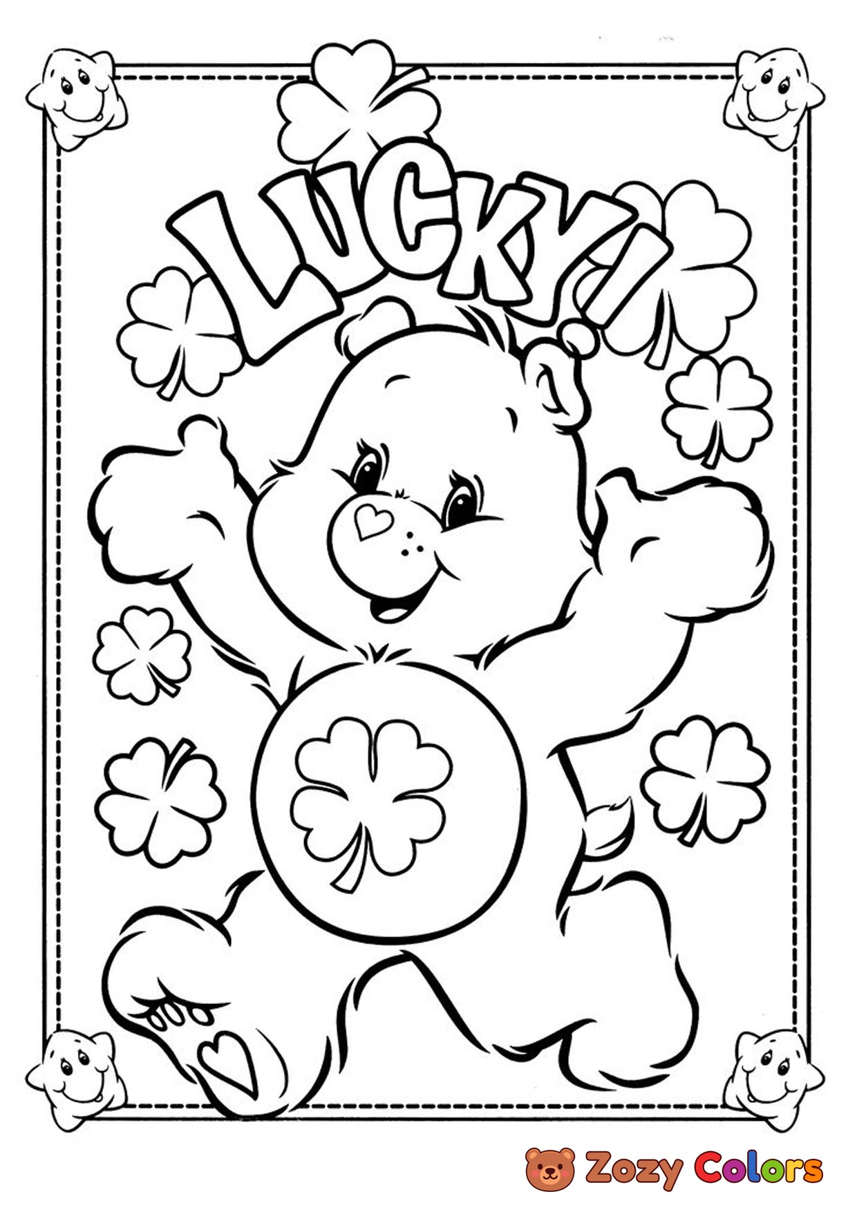 Lucky Teddy bear st patricks day. Coloring page to print or download and color for your kids.