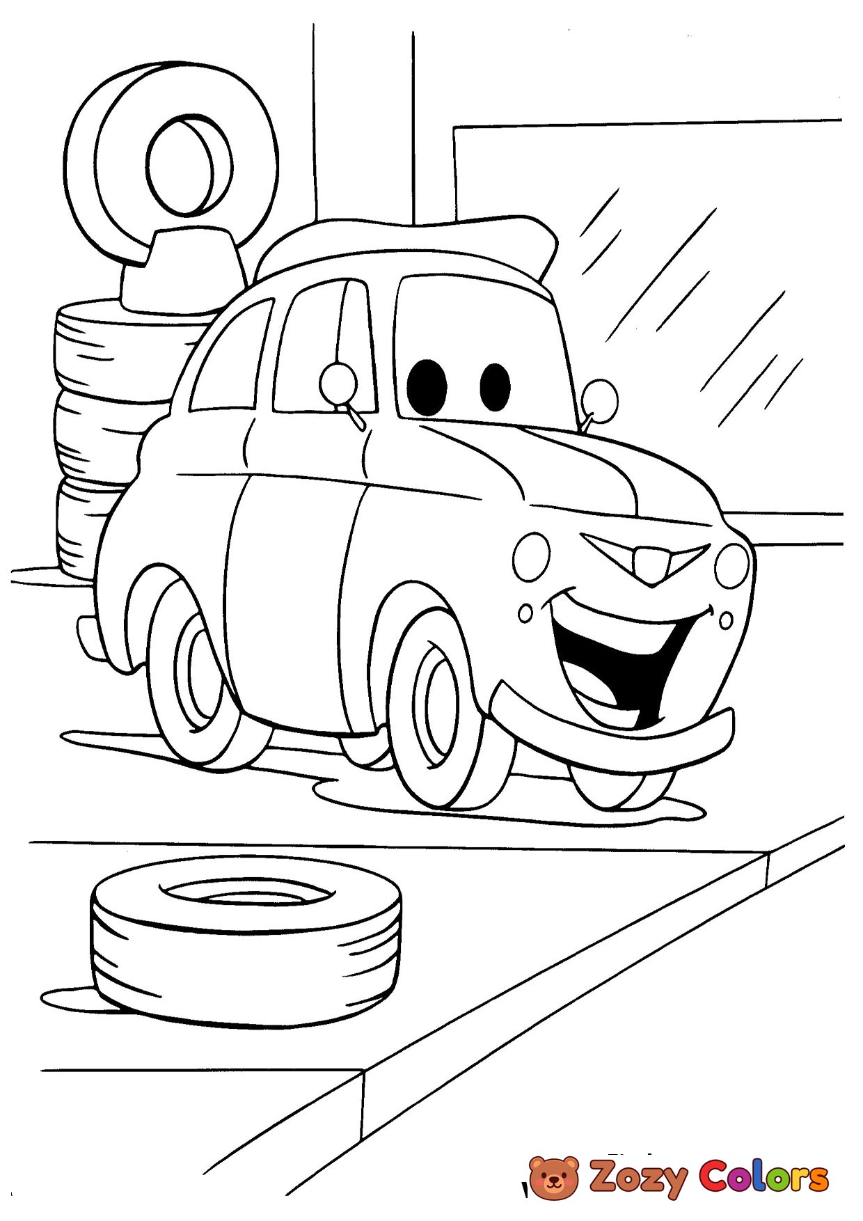 Luigi changing his tires. Coloring page to print or download and color for your kids.