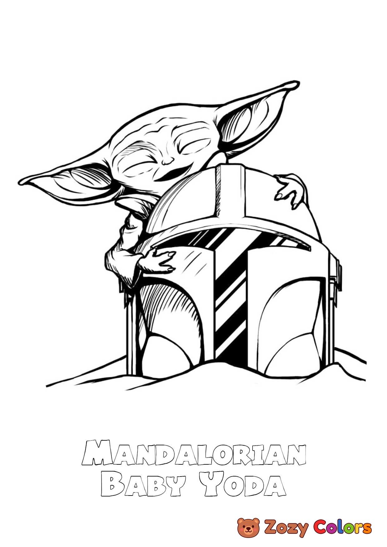 Mandalorian Baby Yoda. Coloring page to print or download and color for your kids.