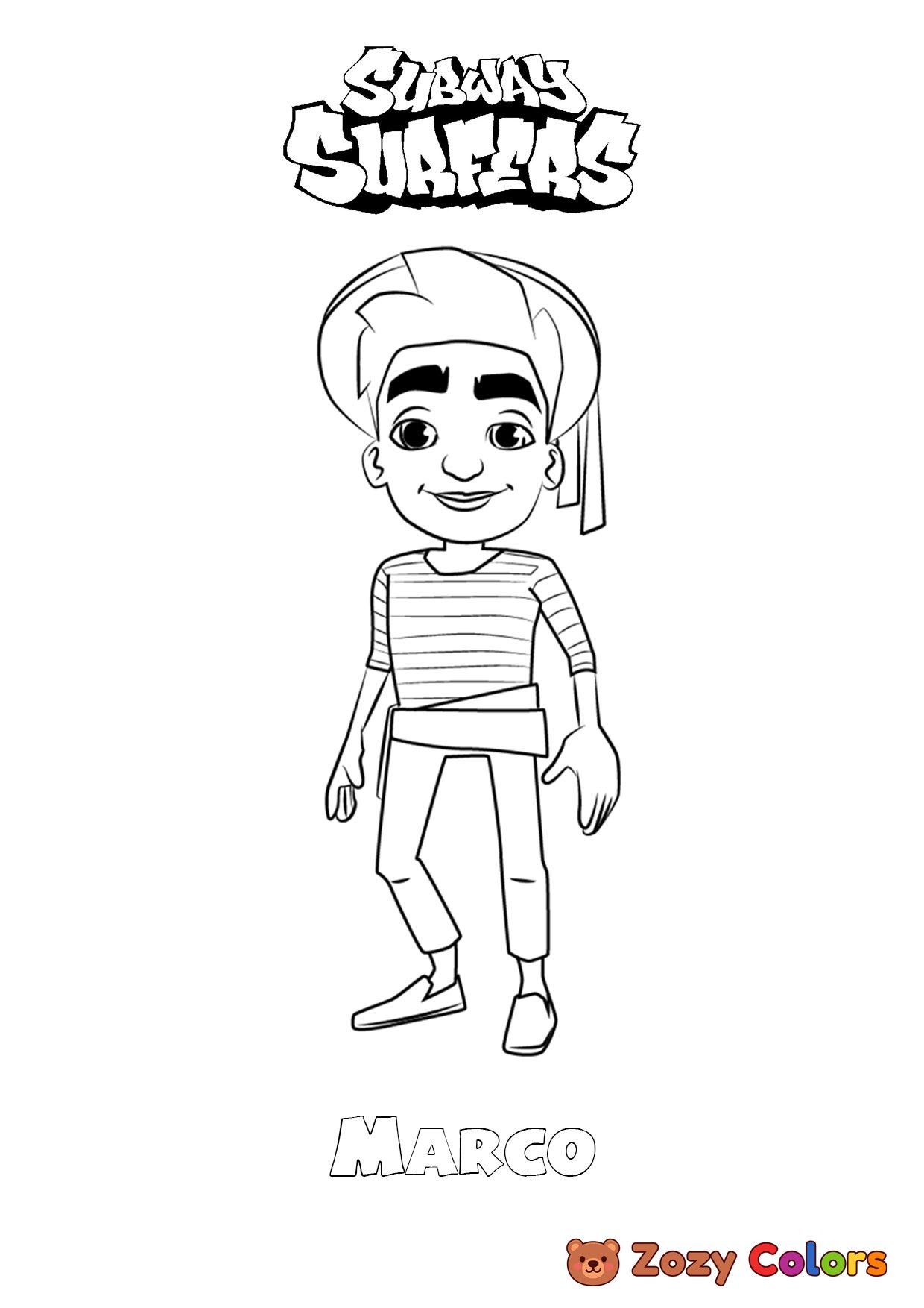 Marco from Subway Surfers. Coloring page to print or download and color for your kids.