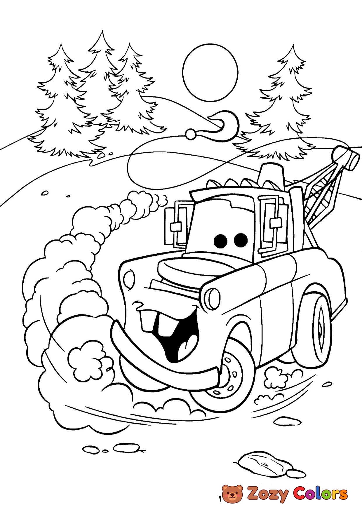Mater riding in the woods. Coloring page to print or download and color for your kids.