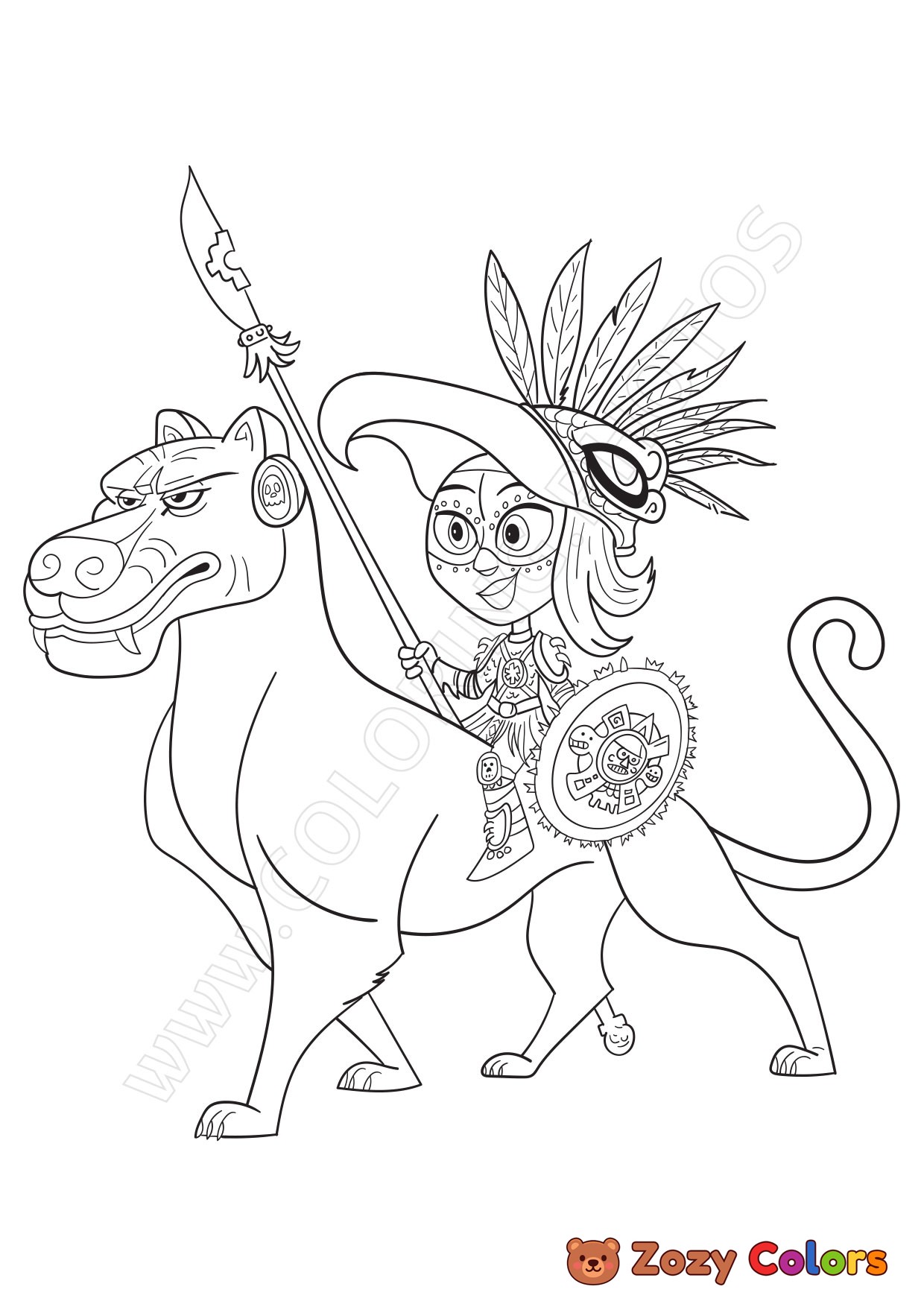 Maya and Chiapa | Maya and the Three. Coloring page to print or download and color for your kids.