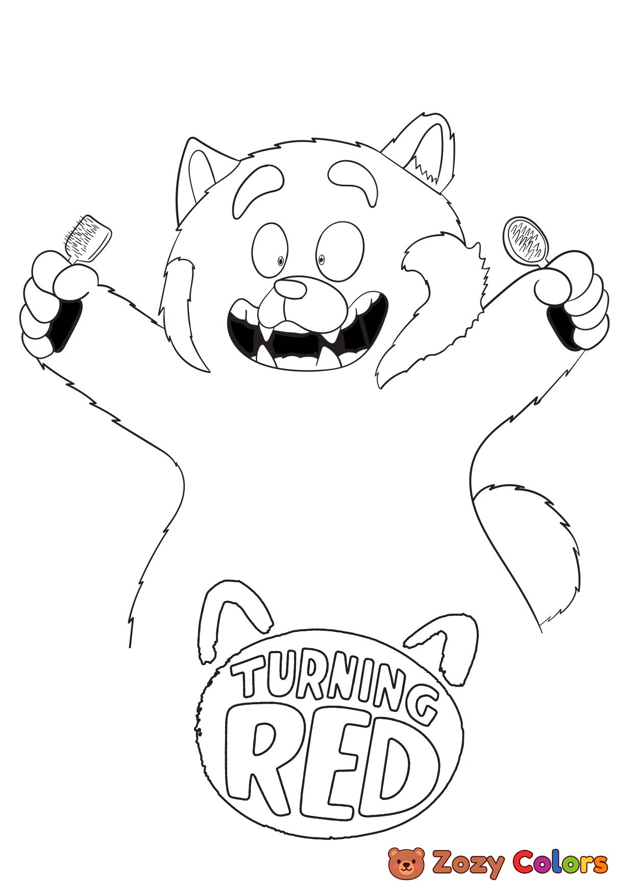 Mei Lee panda with combs. Coloring page to print or download and color for your kids.