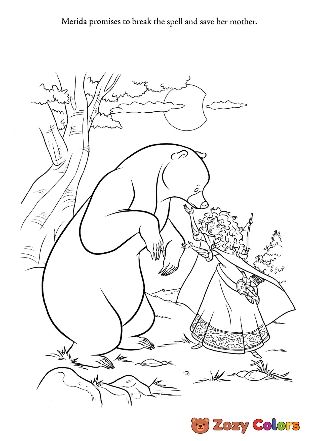 Merida helping her mother. Coloring page to print or download and color for your kids.