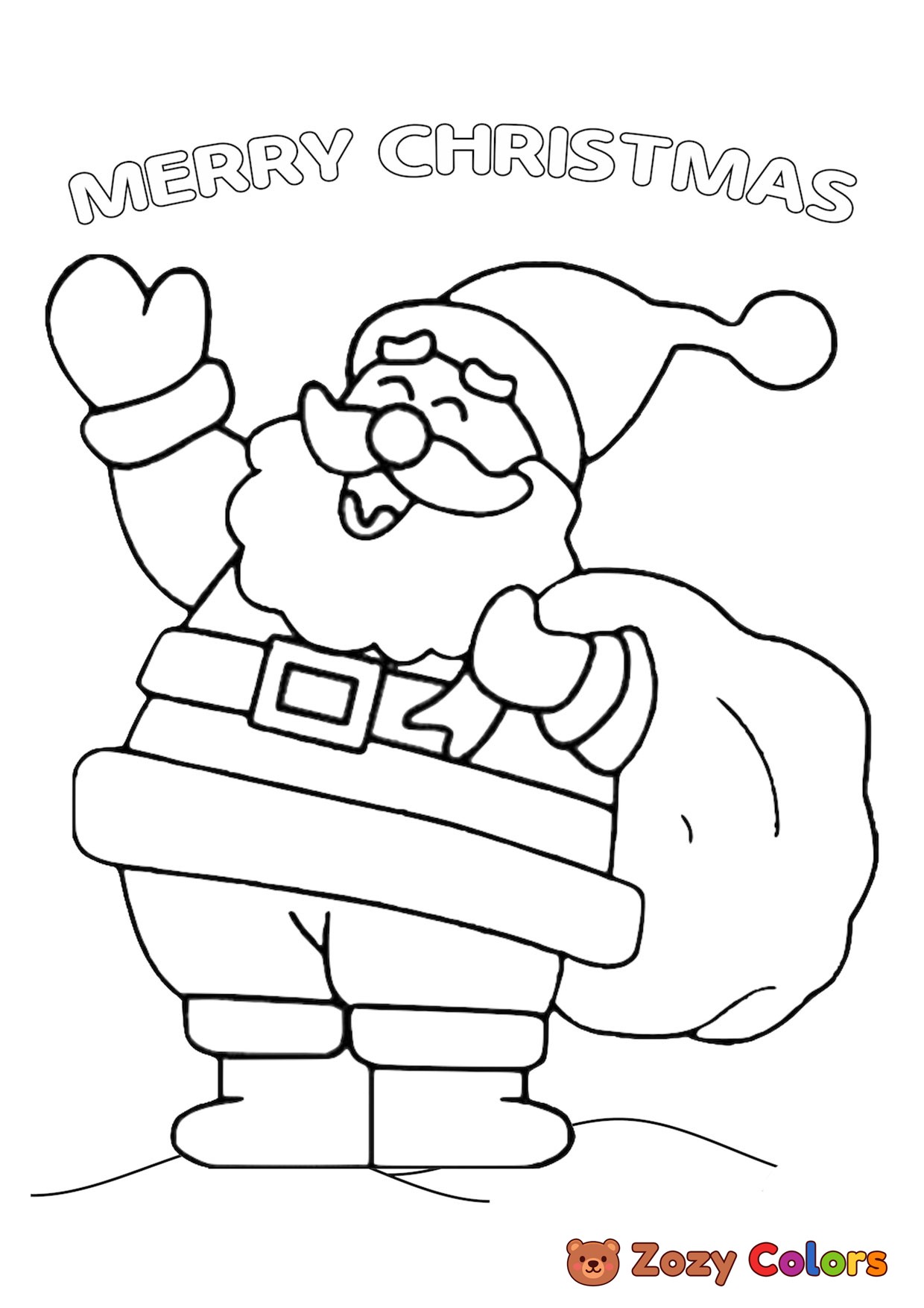 Merry Christmas from Santa Claus. Coloring page to print or download and color for your kids.