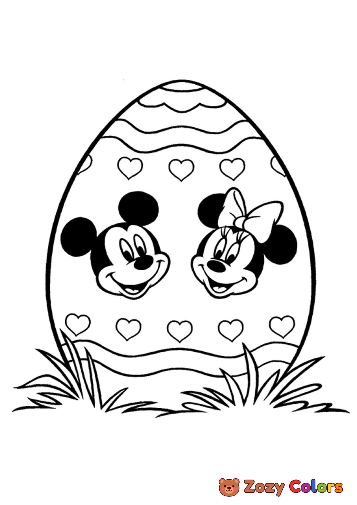 Mickey and Minnie easter egg. Coloring page to print or download and color for your kids.