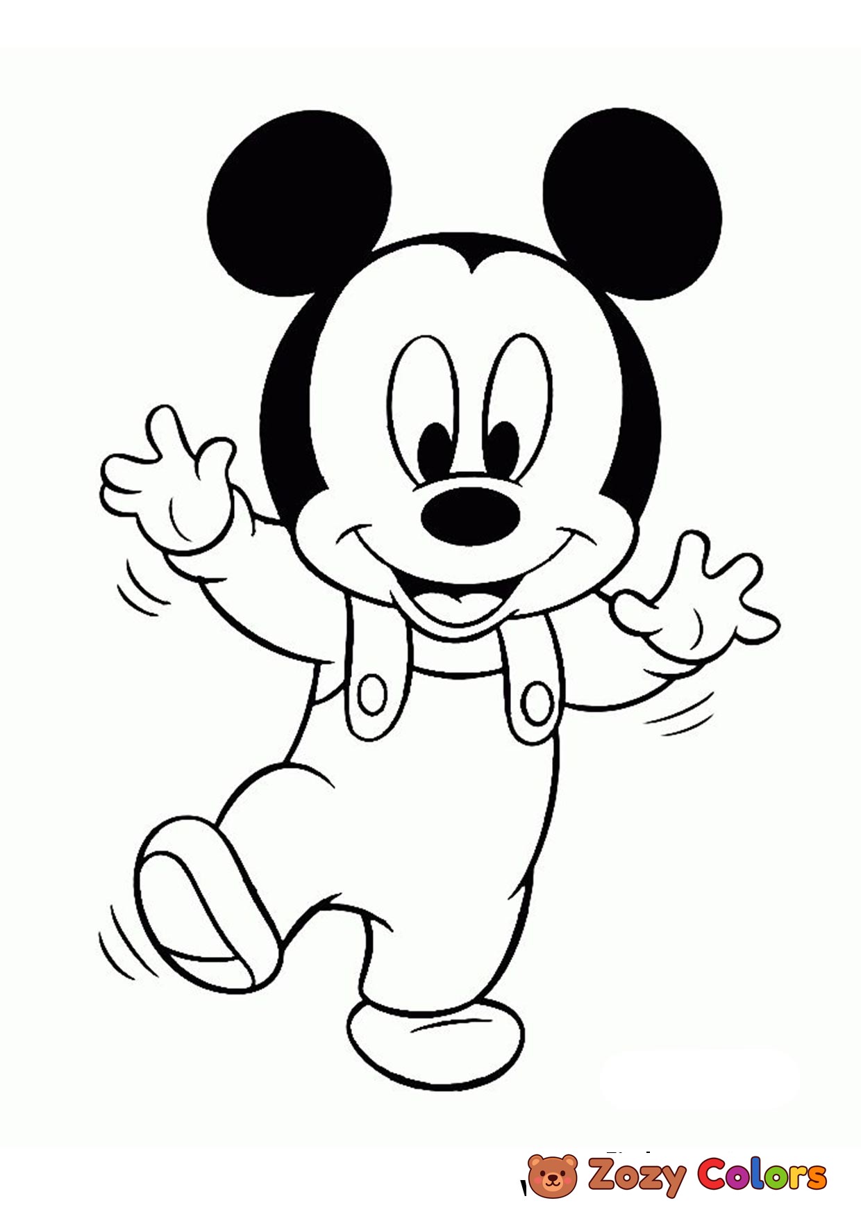 Mickey Mouse baby learning to walk. Coloring page to print or download and color.