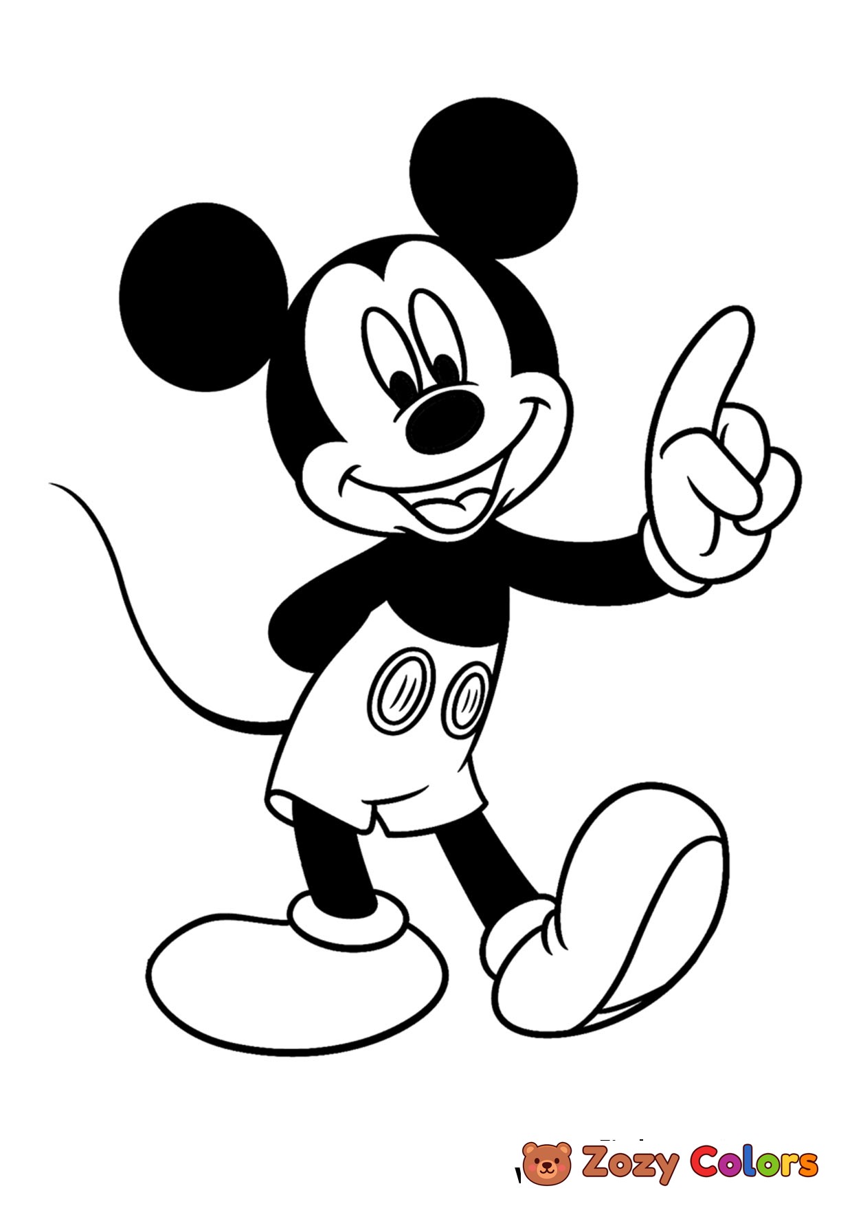 Mickey Mouse pointing his finger. Coloring page to print or download and color.