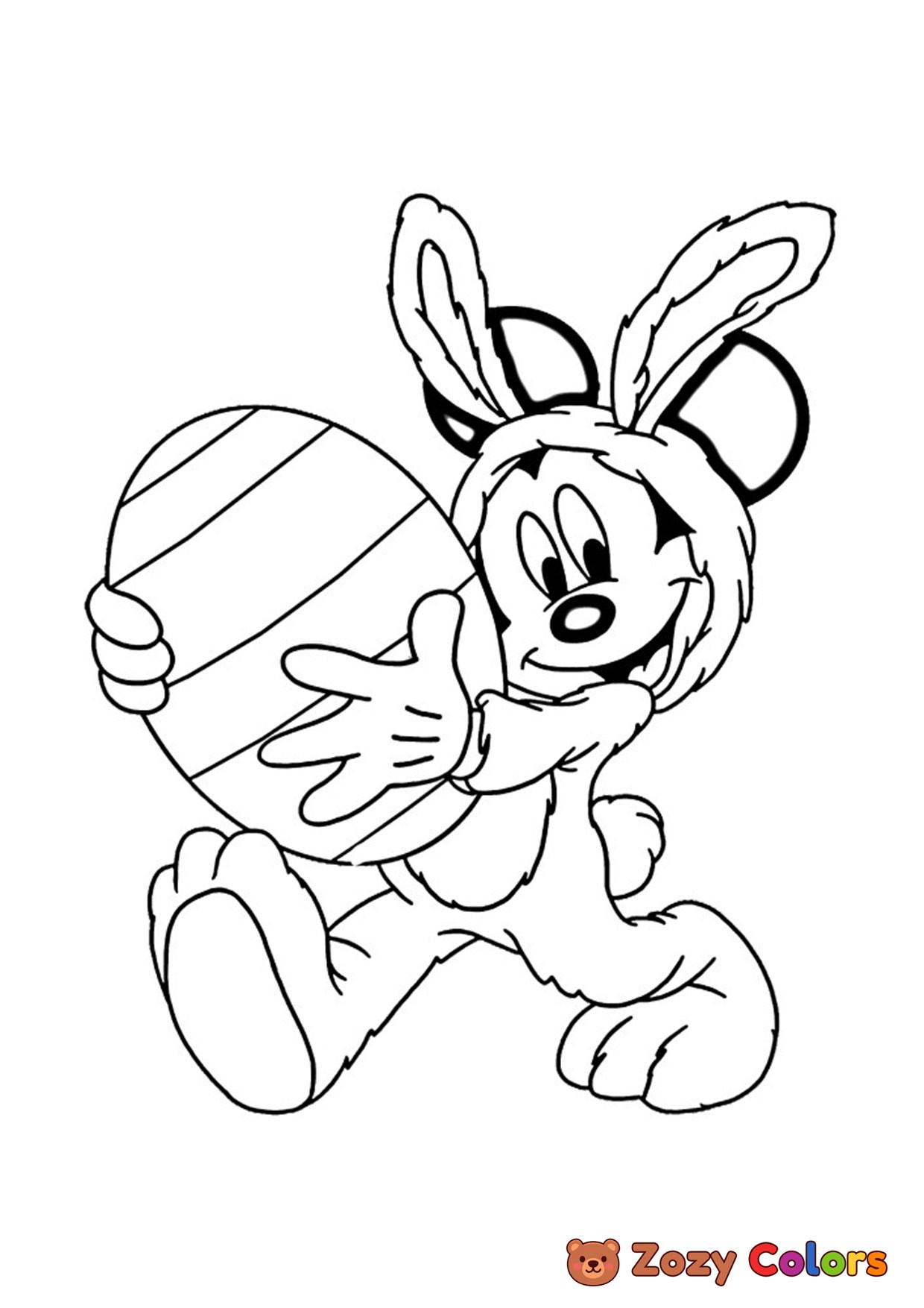 Mickey mouse with easter egg. Coloring page to print or download and color for your kids.