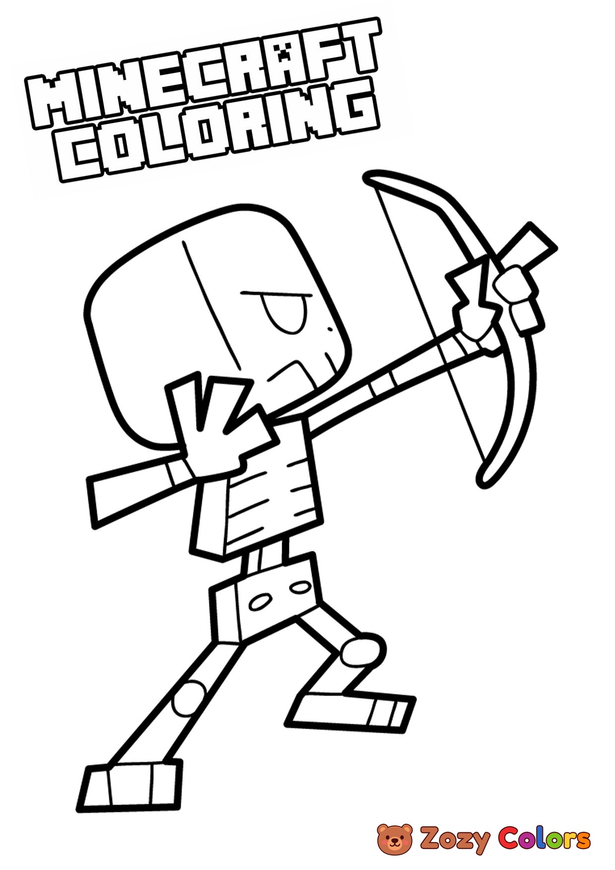 Minecraft Skeleton with a bow. Coloring page to print or download and color for your kids.