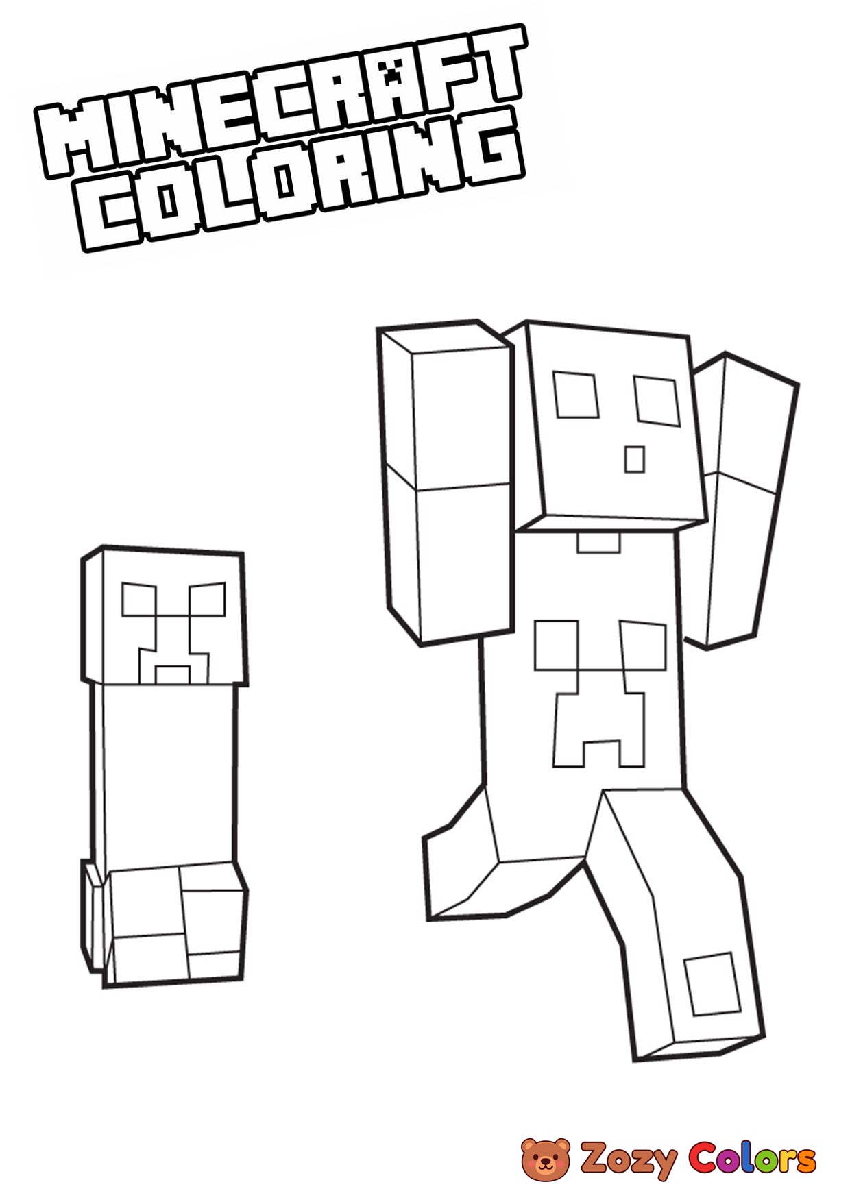 Minecraft - Steve being chased. Coloring page to print or download and color for your kids.