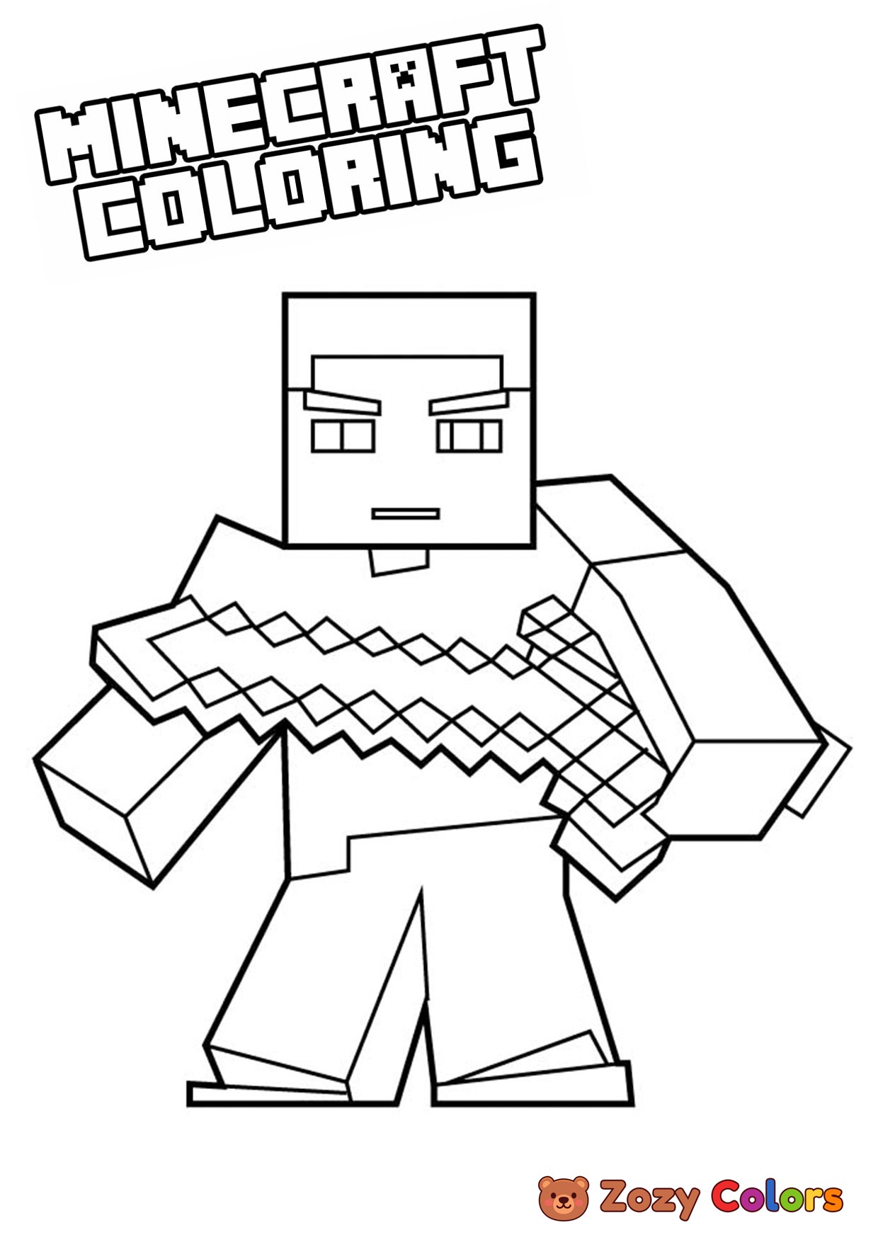 Minecraft Steve with a sword looking good. Coloring page to print or download and color for your kids.