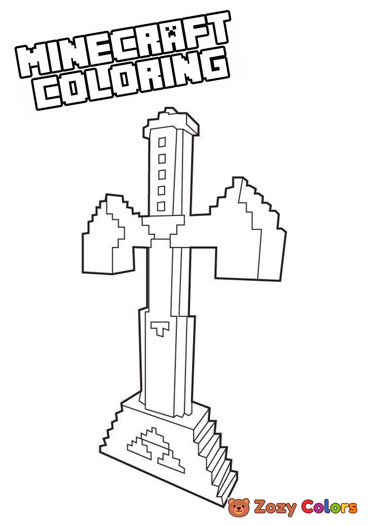 Minecraft sword set in stone. Coloring page to print or download and color for your kids.