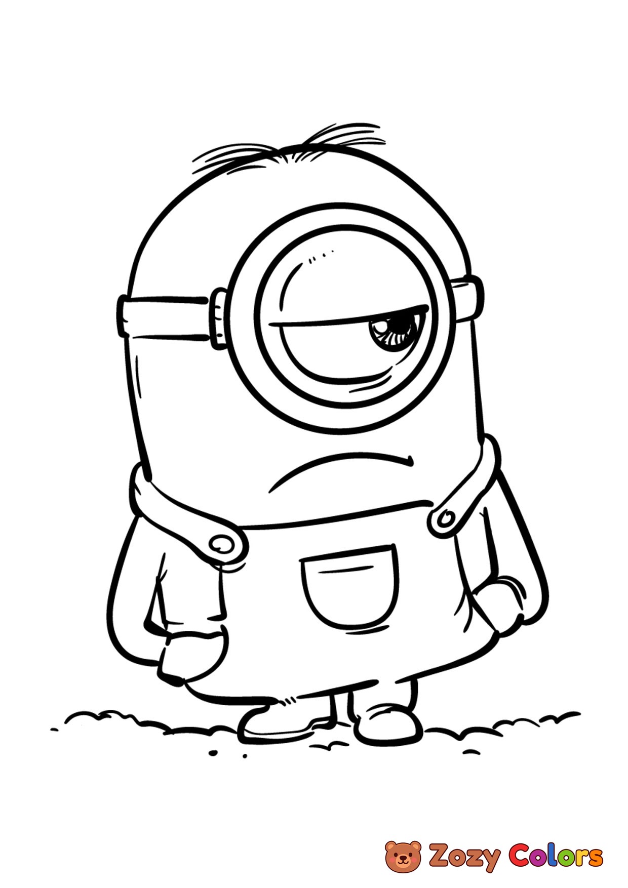 Minion Stuart from rise of gru. Coloring page to print or download and color for your kids.