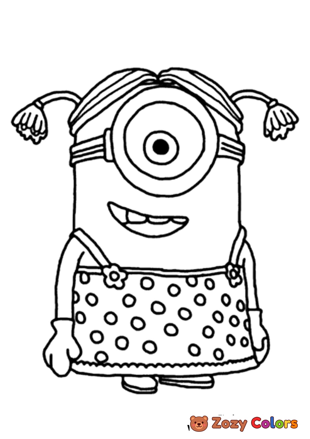 Minions Stuart in dress looking goodon in that dress. Coloring page to print or download and color.